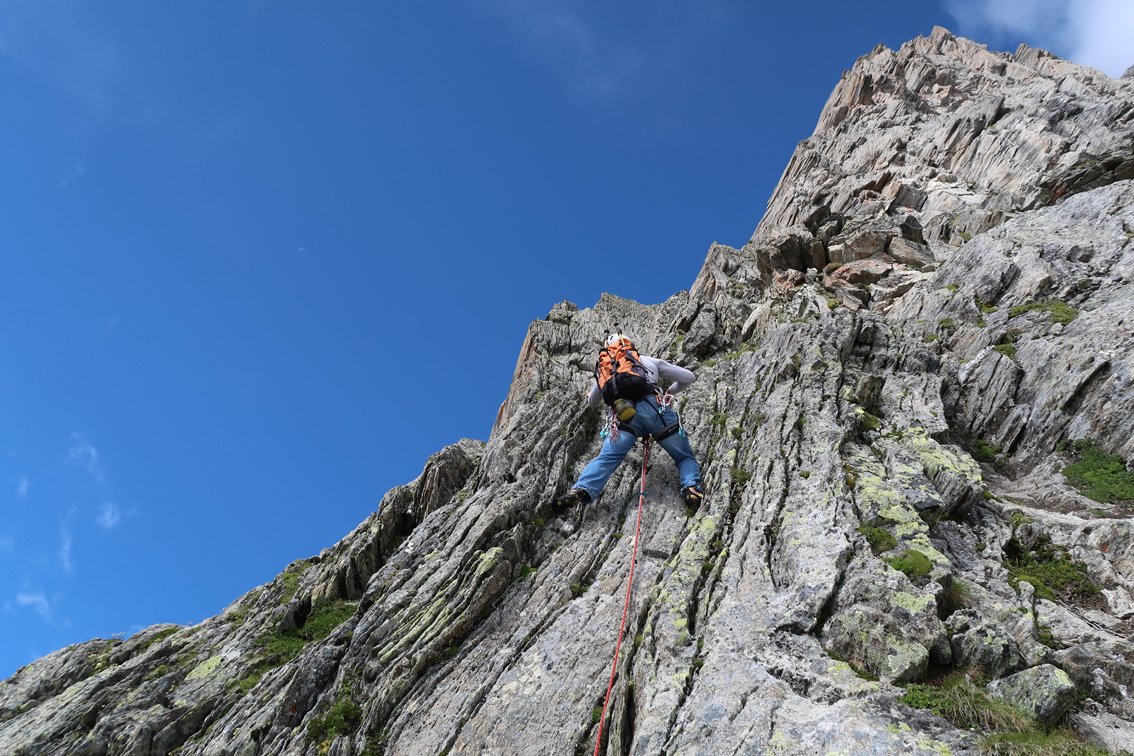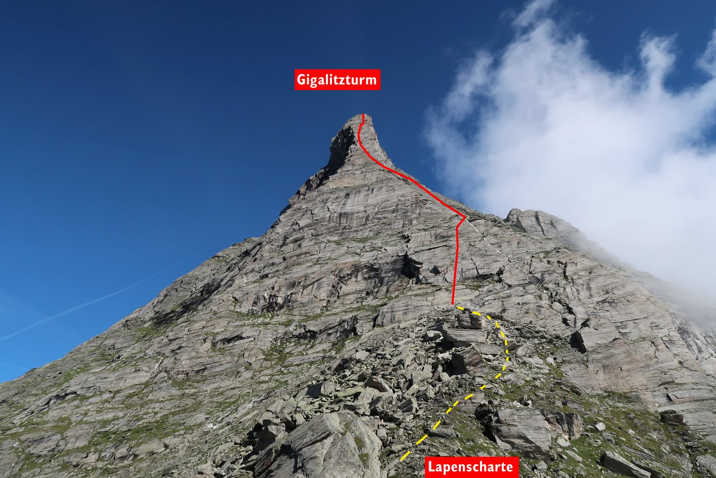 Super schöner alpiner Klassiker im Zillertal! Der Südostgrat wurde mit Bohrhaken saniert, man kann jetzt recht unbeschwert die sieben Seillängen auf den Gigalitzturm hinauf turnen. Der Fels ist an wenigen Stellen etwas alpin, soll heißen, nicht jeder Griff ist bomben fest. Vom Gigalitzturm muss - nach einer kurzen Abseilfahrt - noch auf dem Verbindungsgrat zum Gigalitz Gipfel (3001 m) geklettert werden. Von dort folgt ein steiler Abstieg auf dem markierten Normalweg zur Greizer Hütte. Perfekte, nicht allzu schwere Gratkletterei mit fantastischem Ausblick auf den Floitenkees.