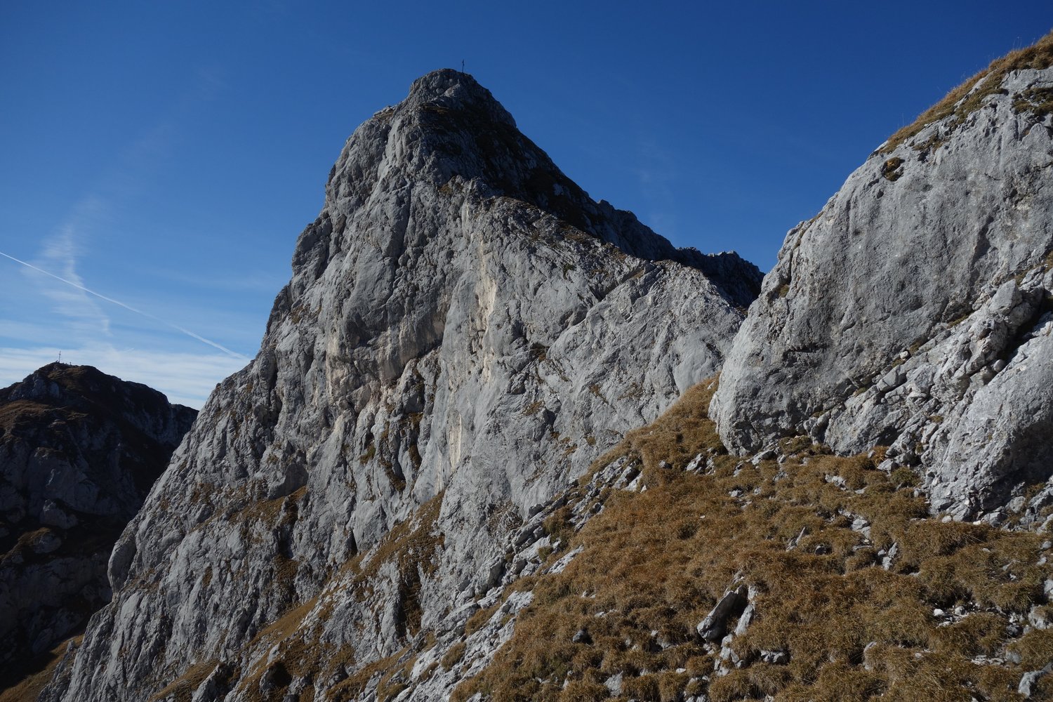 Anspruchsvoll, steil - diffiziler Anstieg am Gimpelvorbau. Eine weitere steile Tour am Gimpelvorbau - dieser Anstieg ist etwas anspruchsvoller als der, von der links verlaufenden Route „Wirklich oben bist du nie“. Die Felsqualität ist nicht einwandfrei, dennoch lohnt sich eine Begehung. Die Kletterei ist ab der dritten Seillänge steil und spektakulär, die Schwierigkeiten steigen deutlich an. Das Dach mit der Bewertung 7 in der 4. Seillänge kann man rechts umgehen. Die Absicherungen sind etwas „sportlich“. Der Vorsteiger sollte den oberen 6. Grad problemlos beherrschen.