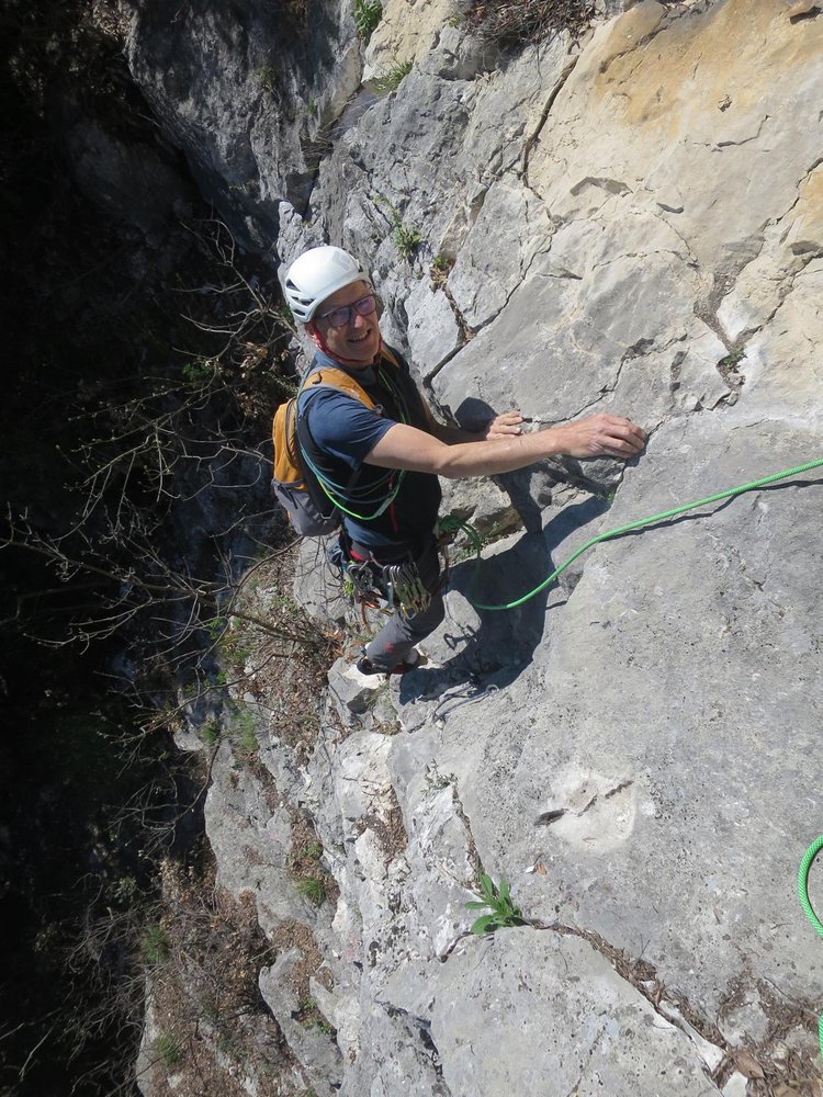 Kurze Passage 7, eine Einzelstelle 6+ und in der letzten Seillänge einige Meter 6-6+.