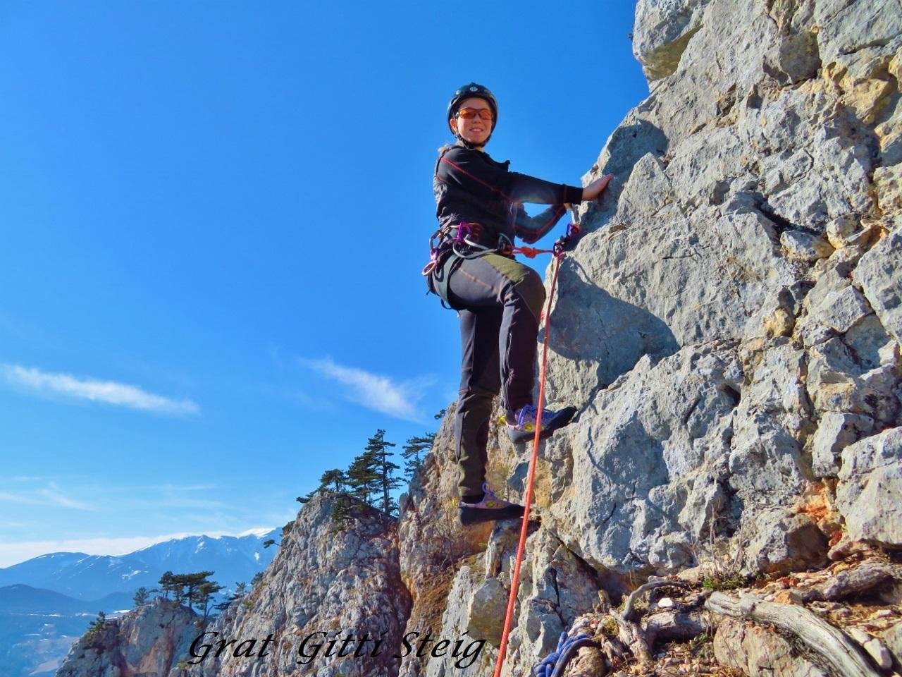 Nette Kurztour mit 1½ Seillängen im Nahbereich der Eicherthütte. Ideale Draufgabe zum Eichertsteig. Der Gittisteig mündet oben in die „Burgenländervariante“ des Eichertsteiges. Die letzten 15 m verlaufen gemeinsam mit dieser.