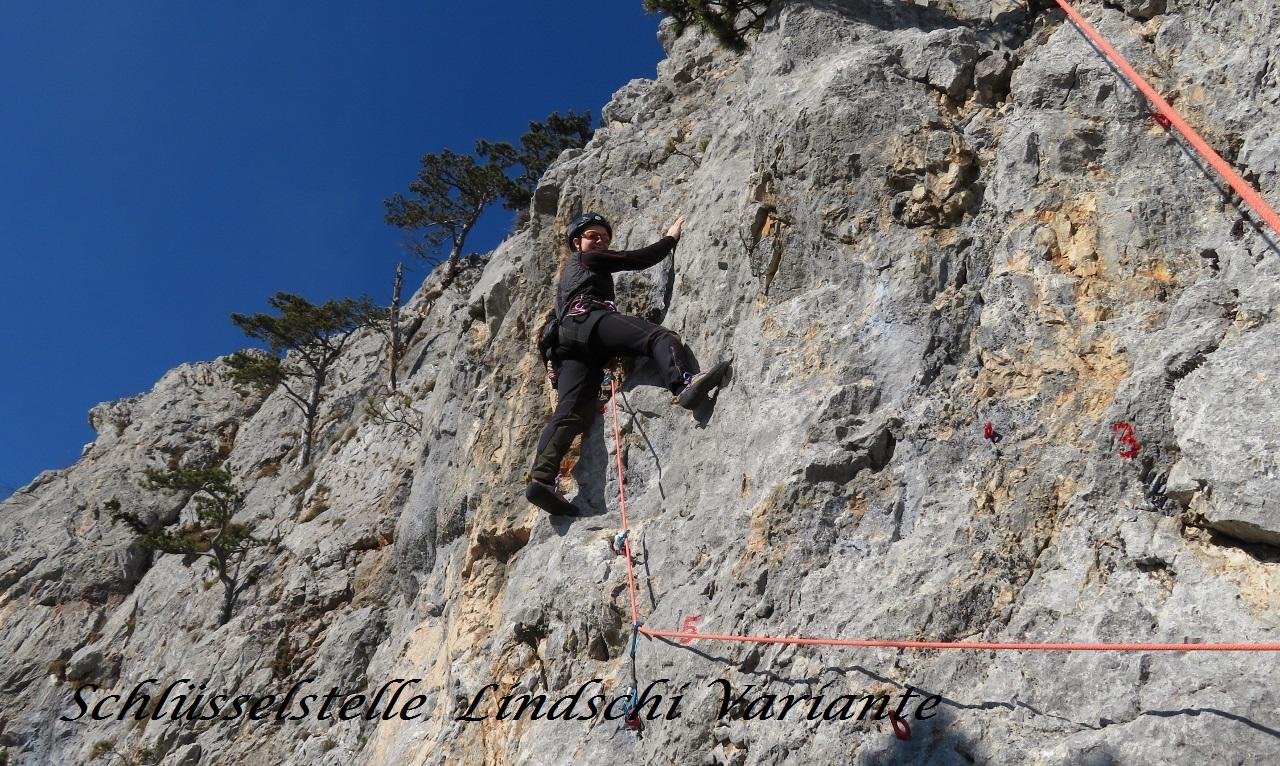 Seit Sept. 2021 gibt es auch links die Lindschi Variante (30 m, 5), siehe dazu Topo!