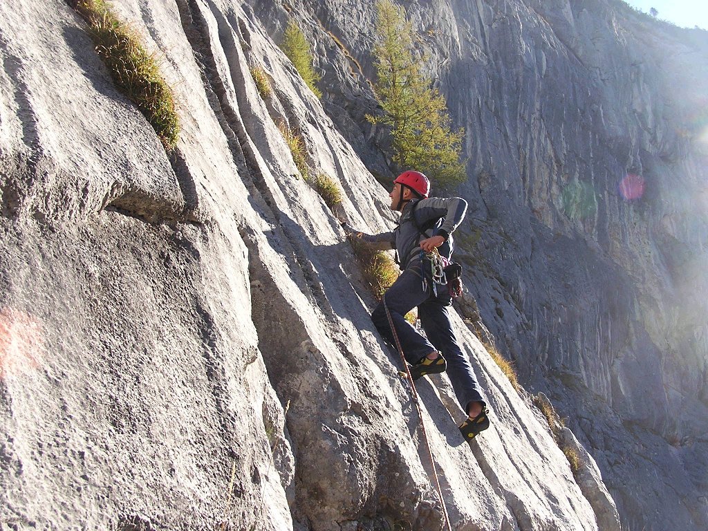 Die route ist mit Bohrhaken gut versichert. Klemmkeile od Friends nicht unbedingt notwendig.
