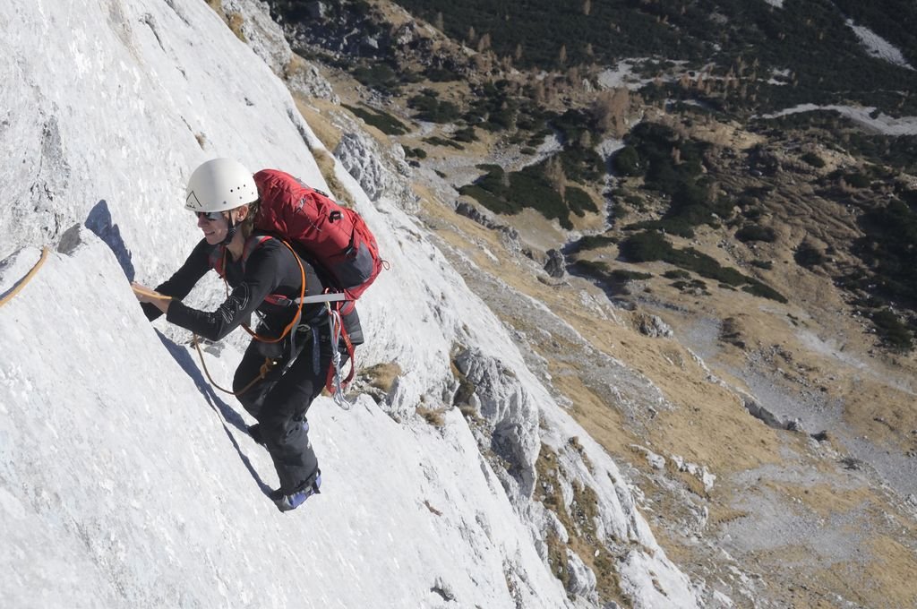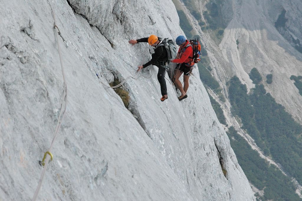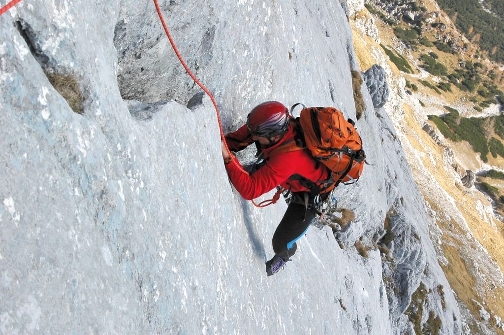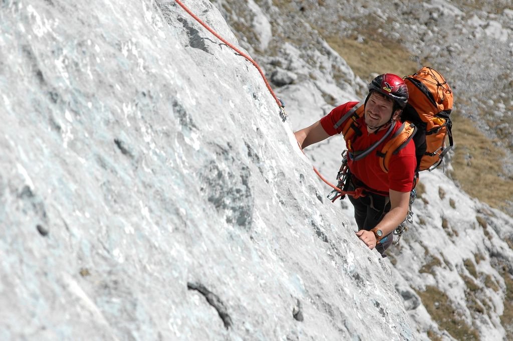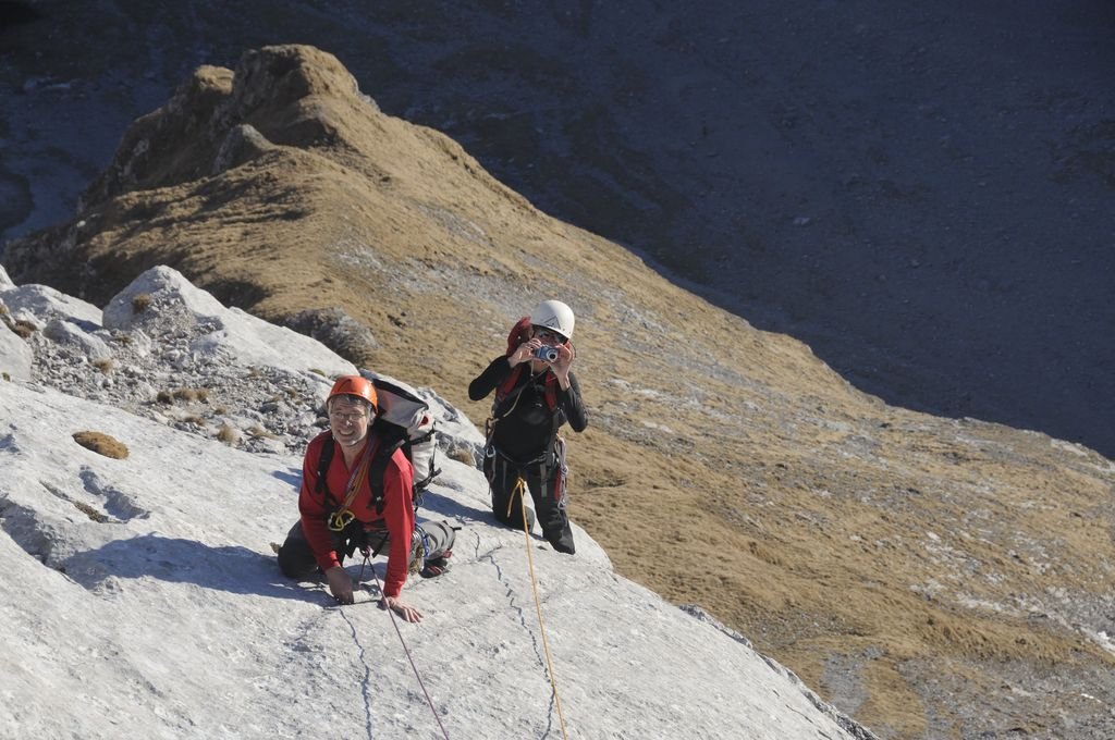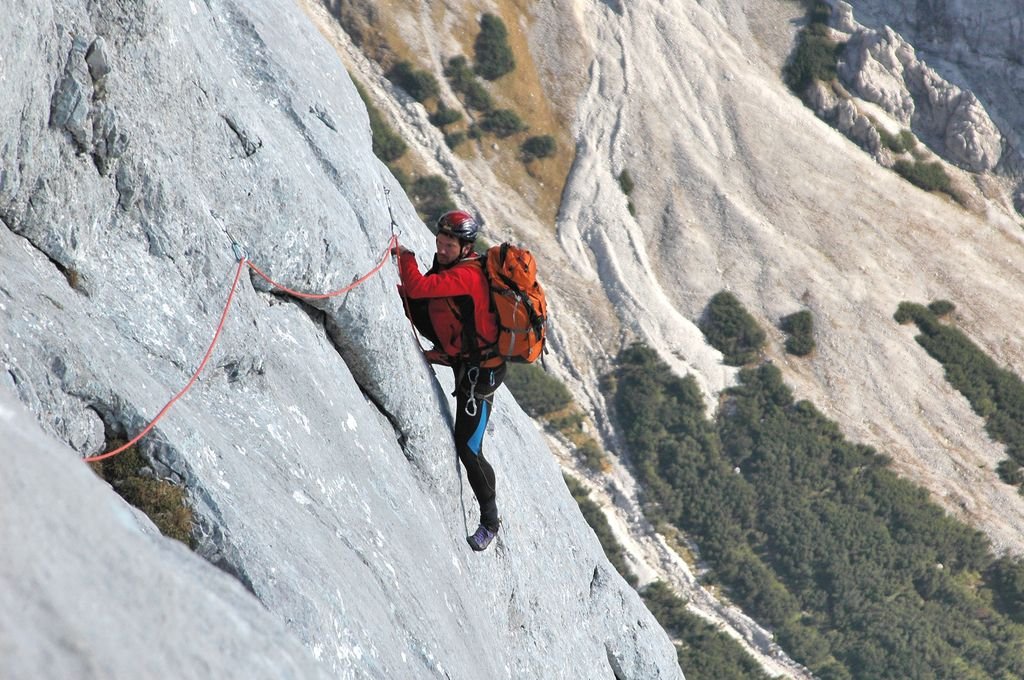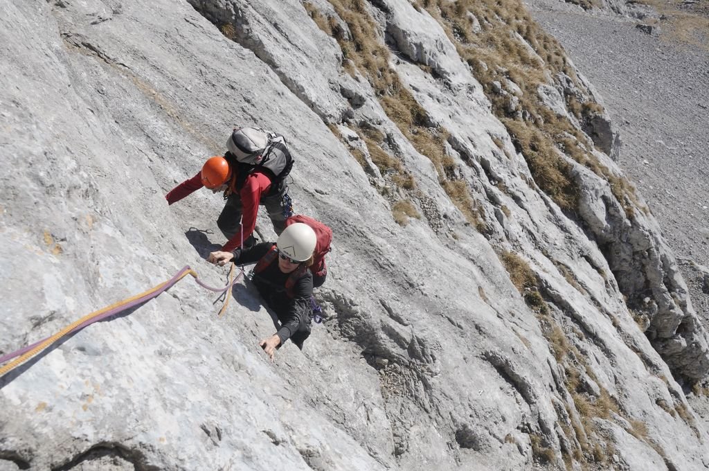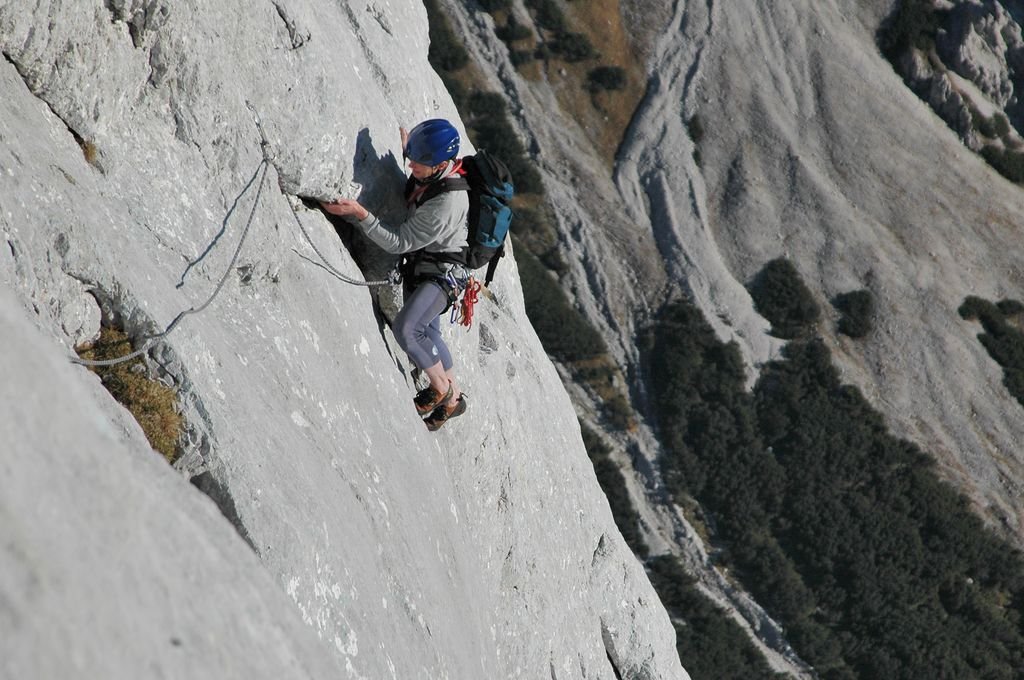 Im oberen Teil mehrere ausgesprochen schöne, gut abgesicherte, aber auch anspruchsvolle Seillängen. Ein paar kurze brüchige Passagen erfordern entsprechende Vorsicht.