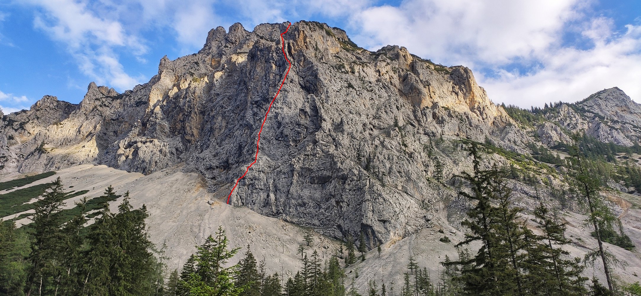 Sehr abgelegene und einsame Kletterei auf der Hochschwab-Nordseite. Die Felsqualität reicht von bombenfesten Platten und Rissen über lose Blöcke bis zu recht porösen Stellen. In Summe aber viele wirklich schöne und lohnende Klettermeter.
