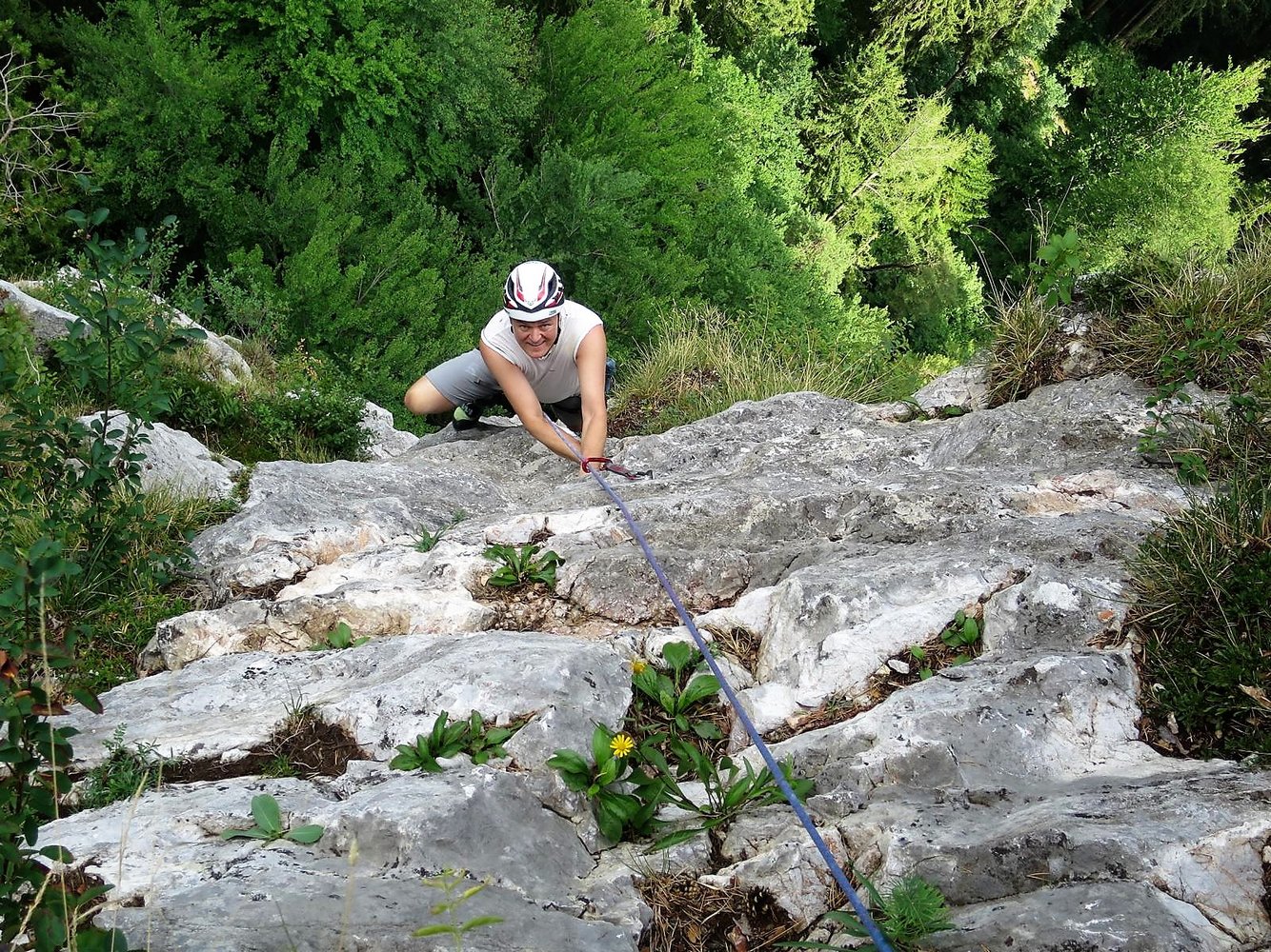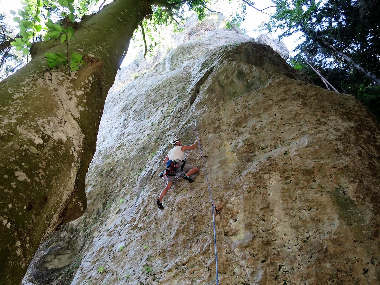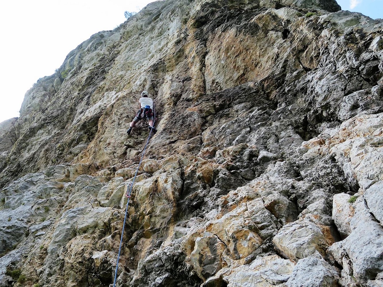Nomen est omen, drei perfekte, steile und sehr kraftraubende Seillängen im allerbesten Fels (bis auf die ersten 2 Meter in der 2. SL) rechts der Steillen Minna am Burgstall. Ein gut gesichertes Muss!