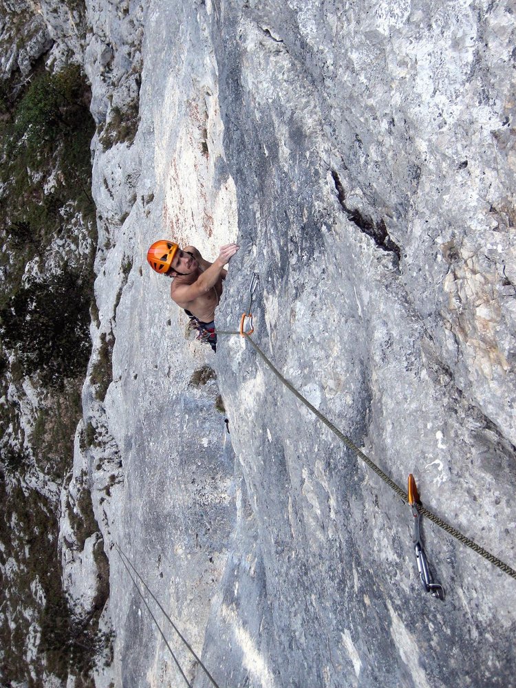 Grandiose Kletterei durch den steilen Wandteil links des Marchartweges. Die Route bietet technisch anspruchsvolle Wandkletterei und verlangt neben einer Portion Fingerkraft vor allem ein präzises Ansteigen. Die 2. Seillänge stellt mangels Rastpositionen außerdem hohe Anforderungen an die Kraftausdauer, wobei die einzelnen Stellen für sich genommen nicht das eigentliche Problem sind. Ausdauer ist auch in der 3. Seillänge gefragt, die gleich mit einem kräftigen Überhang beginnt. In der Summe wartet die Tour mit einer Reihe von Knacknüssen auf, die an die Hürden erinnern, welche Friedrich Torbergs Gott Kupfer seinen Schülern in den Weg gestellt hat.