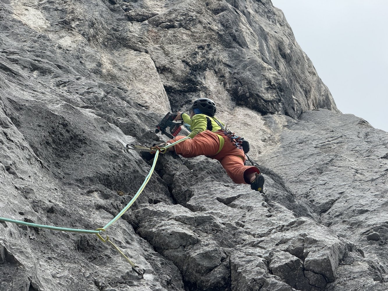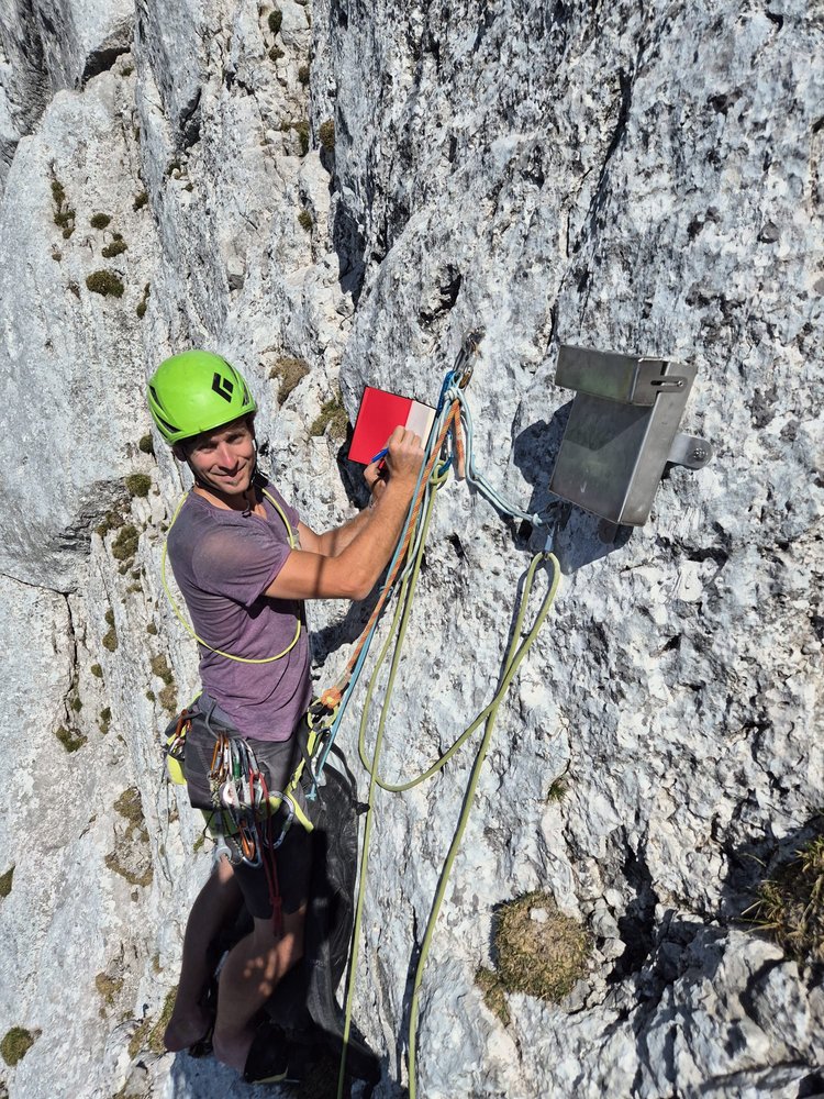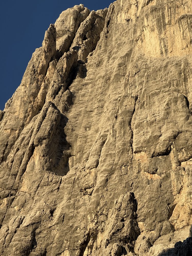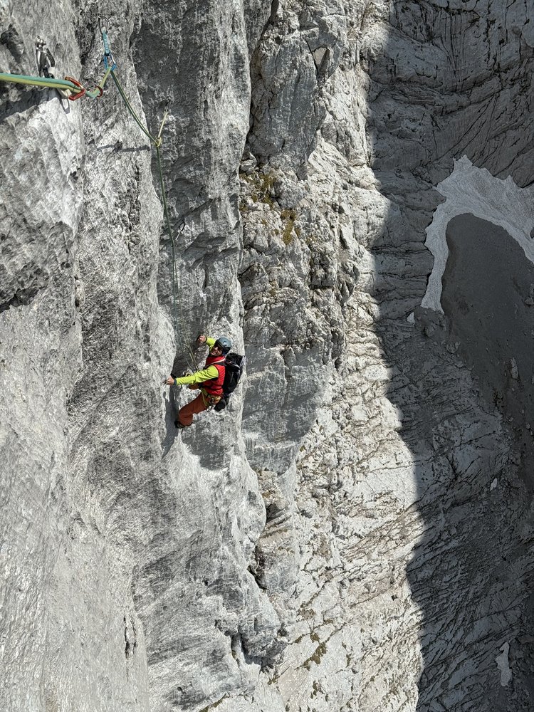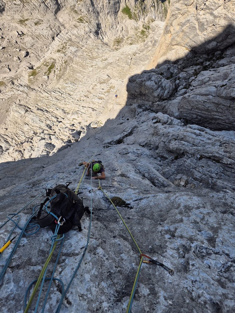 Abseilen über die Tour ist möglich, aber nicht empfehlenswert. Besser Abstieg zum Botzongkamin und durch diesen abseilen, dann Abstieg zum Wandfuß.
