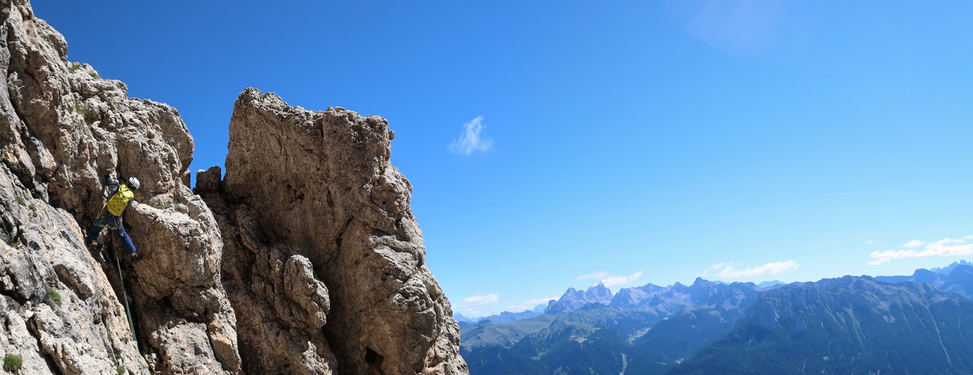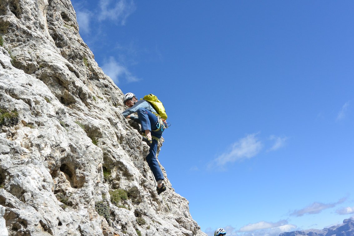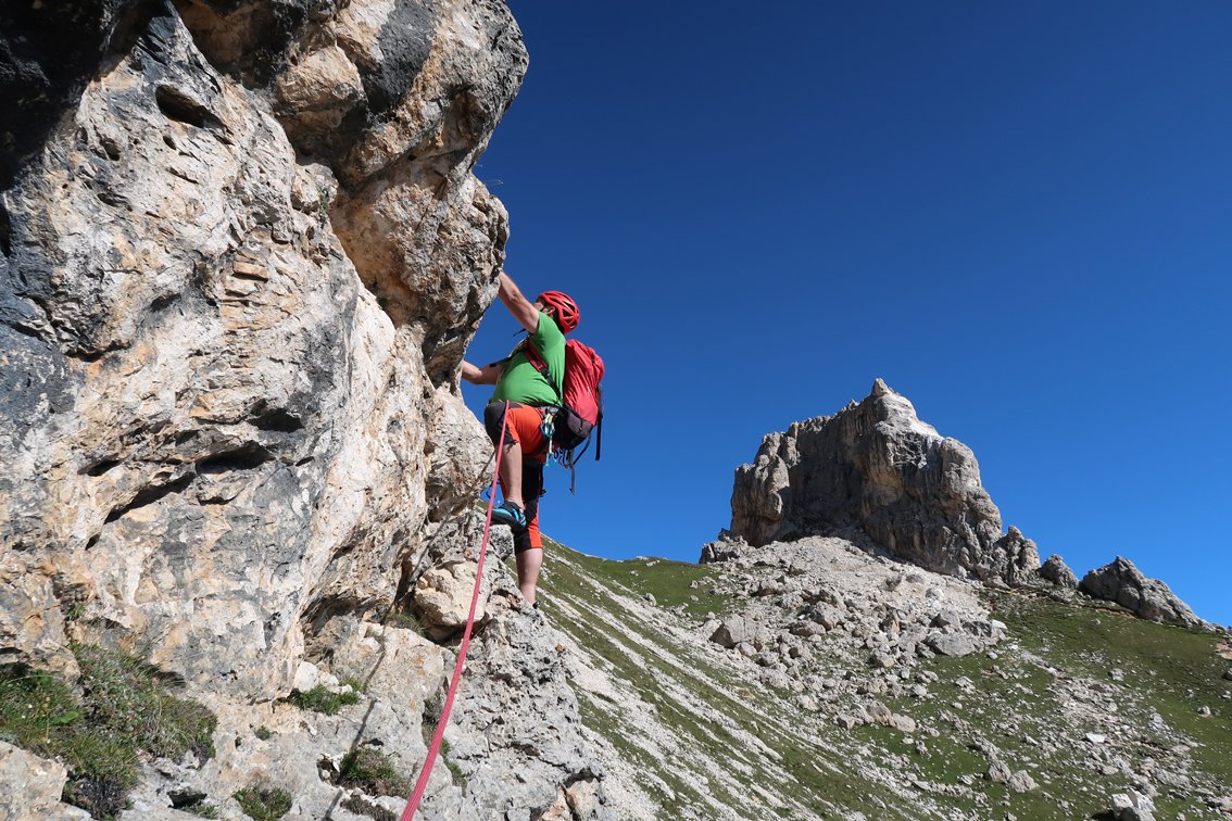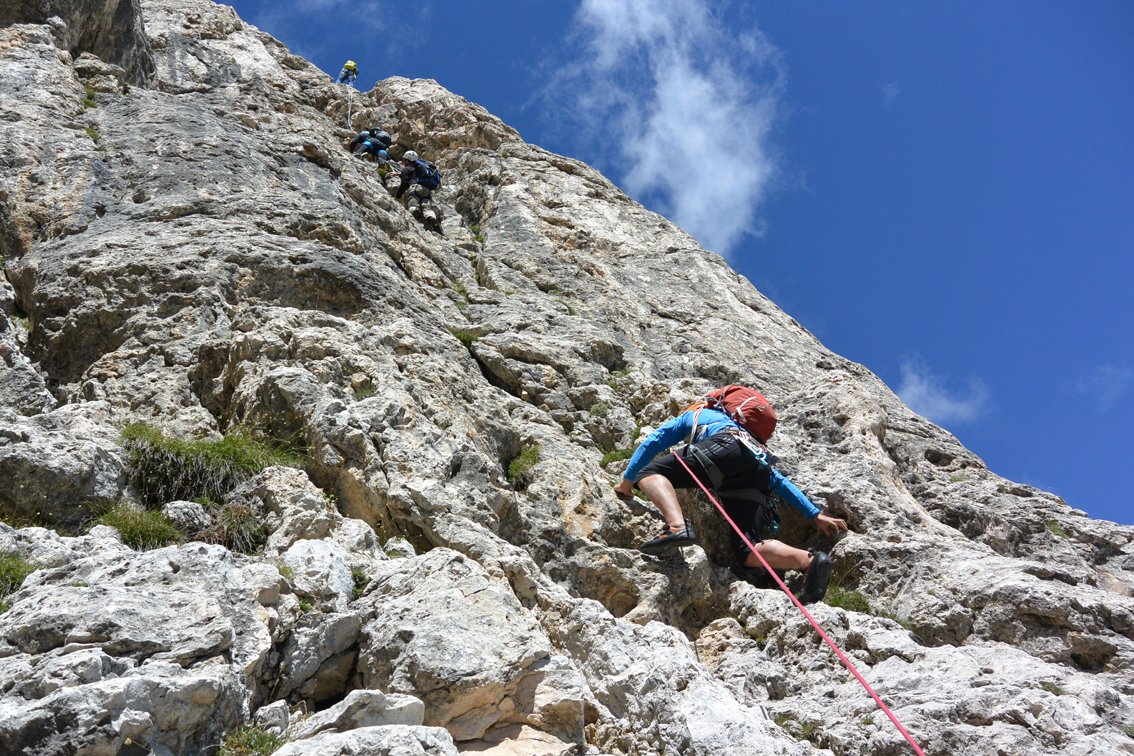 Ein oft begangener Dolomitenklassiker, der schöne, steile und griffige Genusskletterei bietet. Der Anstieg ist sehr beliebt und wird auch gerne von Bergführern mit Gästen gemacht. Man kann auf div. Varianten hinauf auf die Teufelswandklettern - schönes alpines Klettererlebnis direkt neben der Rotwand.