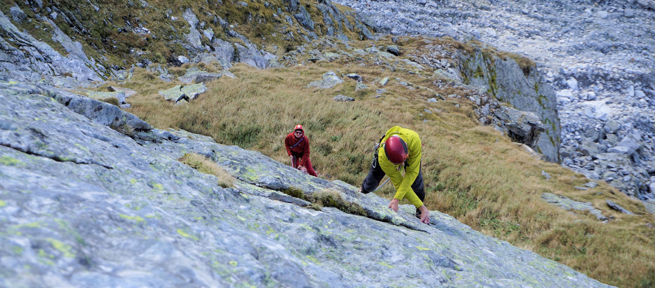 1. SL auf den Pfeilerkopf - 3°. Von hier den BH in die Platten folgen.