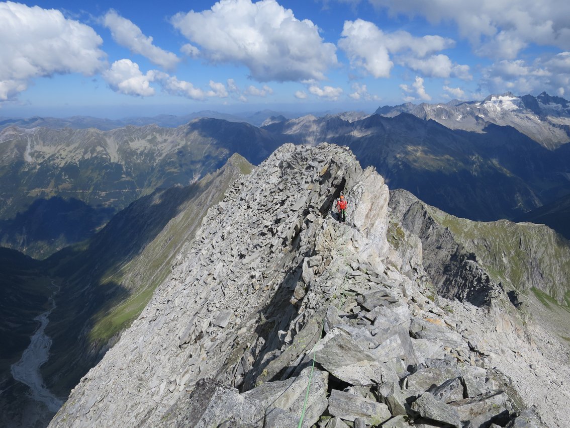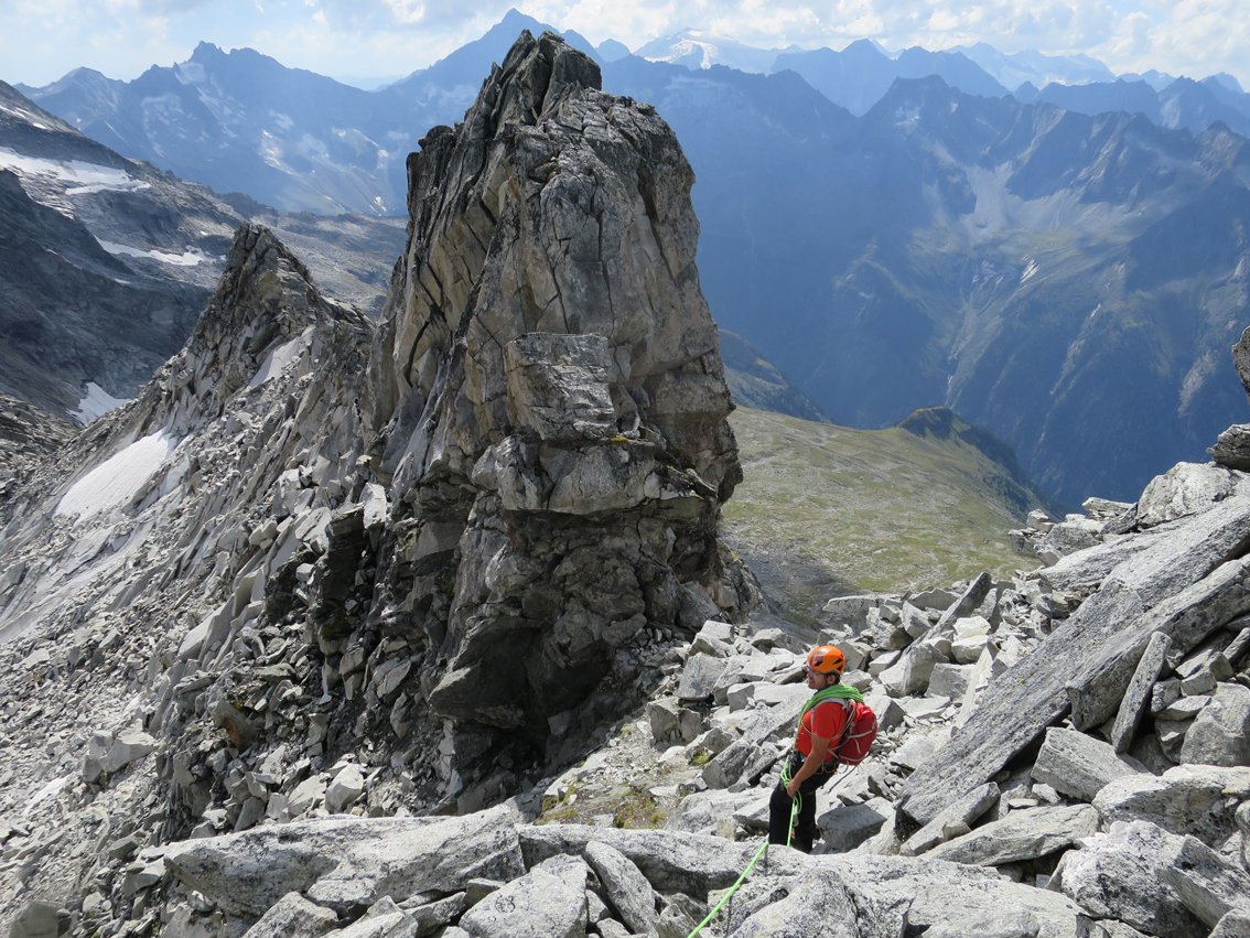 Kommt man das erste Mal zur Bodenalm, bleibt einem für kurze Zeit der Mund offen - wirklich gewaltig steht die Nordkante hinten im Kar. Der Anstieg an der Nordkante (auch Mittergrat genannt) ist ein ganz großer Klassiker in den Ostalpen. Die Tour gehört neben der Fußstein Nordkante und dem Badile Nordgrat zu den drei großen Grantitouren. Man klettert an bestem Granit in toller Umgebung, links und rechts der Kante gibt es noch Gletscherreste - am Ende steht man auf dem Gipfel eines 3000ers. Die Kletterei erfolgt primär an festem Granit, die schweren Passagen sind kurz und die Standplätze meist angenehm. Eine der schönsten alpinen Klettereien der Zillertaler Alpen, die sowohl klettertechnisch als auch konditionell durchaus fordernd ist - aber gerade das macht solche Routen zu unvergesslichen Alpinabenteuern.