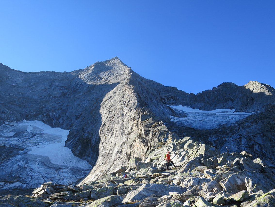 Diese Tour kann man dann nicht mehr als "Hochtour" werten, man kommt weder beim Zu- und Abstieg auf einen Gletscher. Evtl. gibt es im Frühsommer aber noch Altschnee.