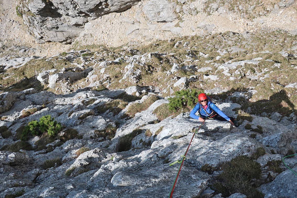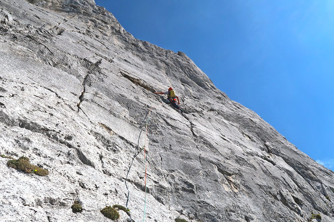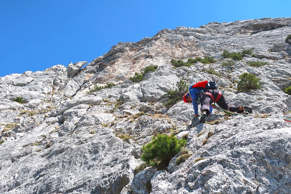 In der 13. Seillänge wird an 2 Passagen technisch geklettert - für Schwächere ist eine Bandschlinge zum Reinsteigen zu empfehlen.