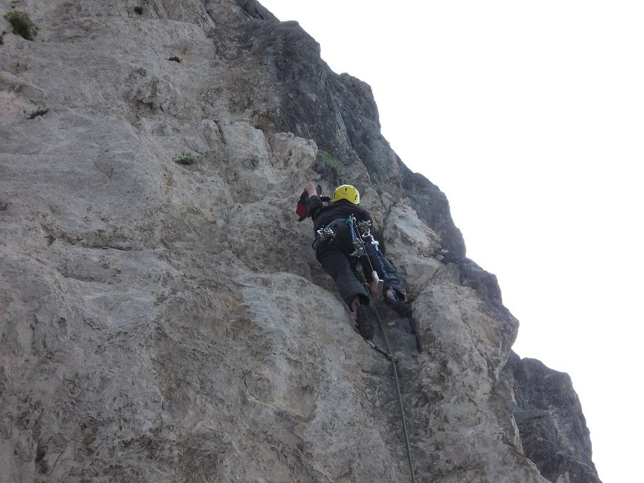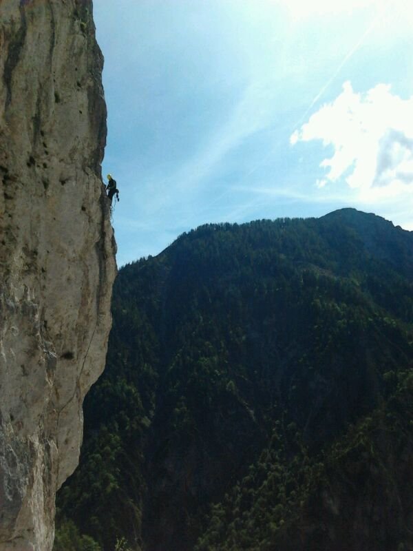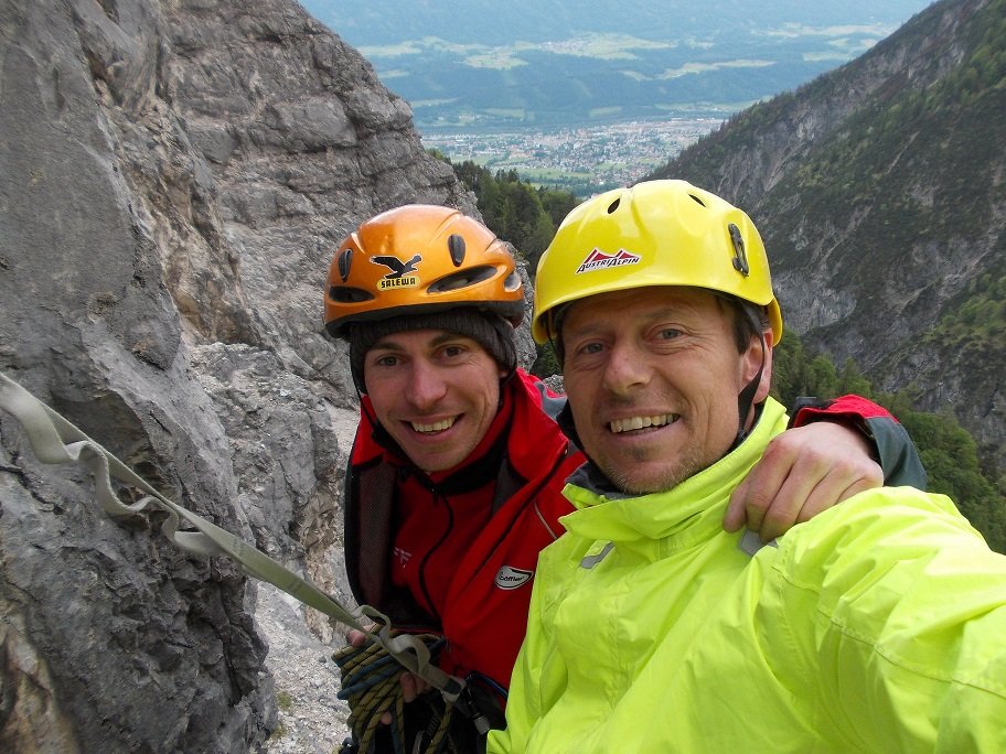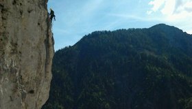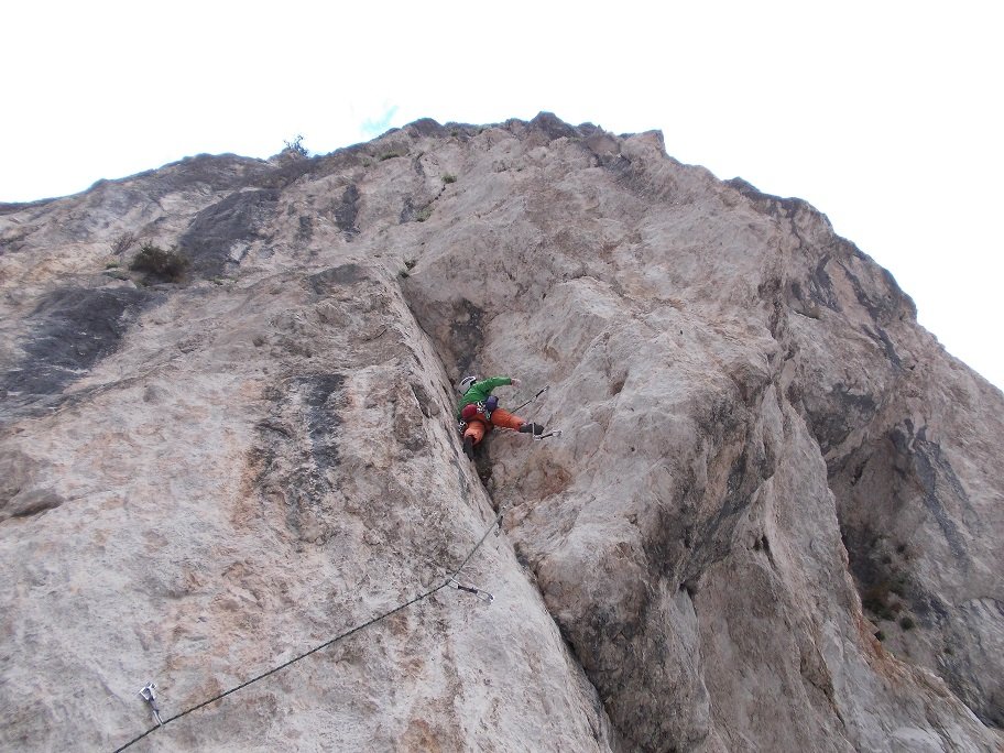 Gut abgesicherte Alpinroute mit teils brüchigen Fels.