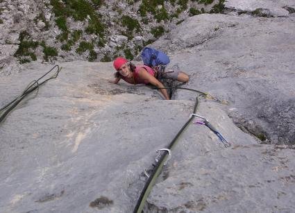 12 Express, 1x 50 m Einfachseil (wer über die Tour abseilt Doppelseil), Helm und ein Satz mittlerer Keile und einem kompletten Camalot-Sortiment von 0,1 - 3,0