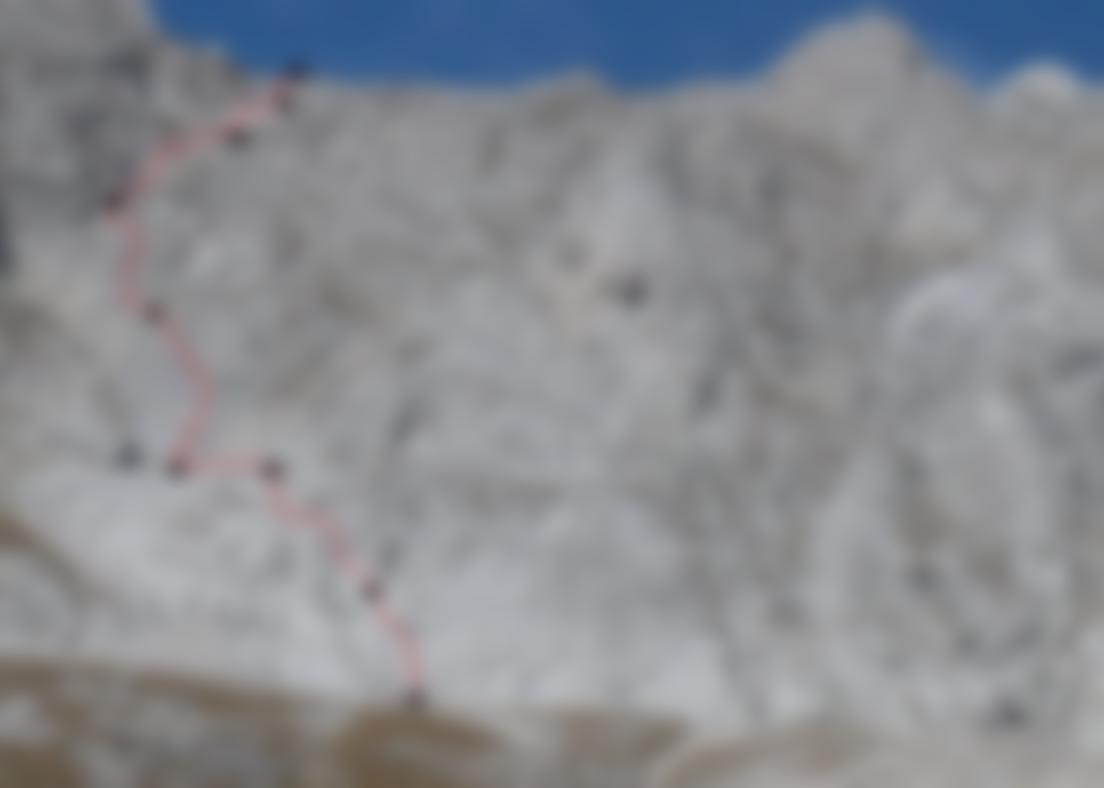 Der Einstieg befindet sich am Beginn des Vorbaues bei zwei Bohrhaken. Ca. 50 Min. ab der Florlhütte.