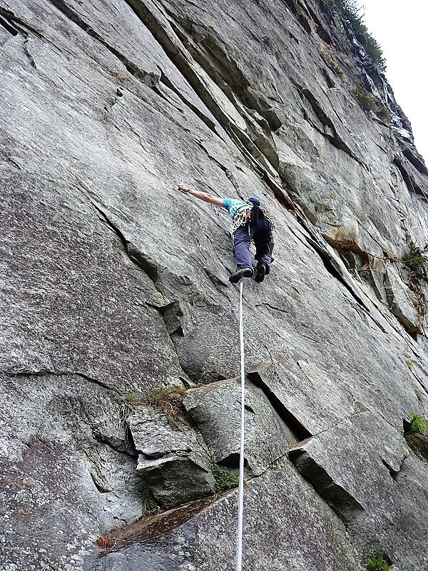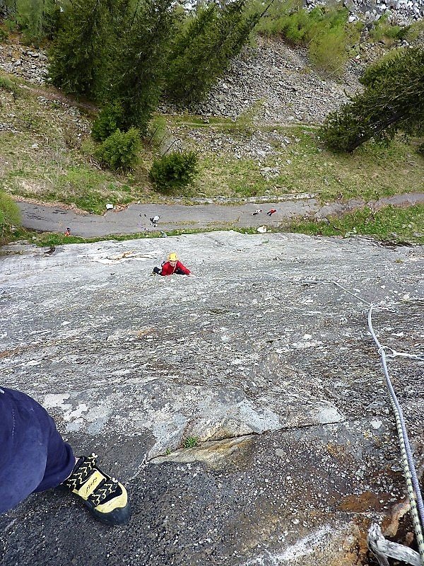 Vom Parkplatz auf der alten Straße in 3 min unter die sichtbare Wand. Der Einstieg der Route ist ziemlich in der Mitte des direkt von der Straße wegführenden Wandteils. Der Name der Tour ist angeschrieben.