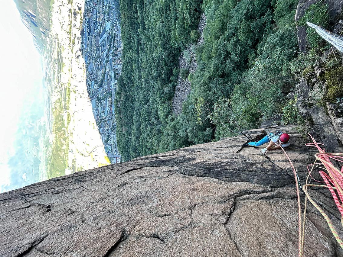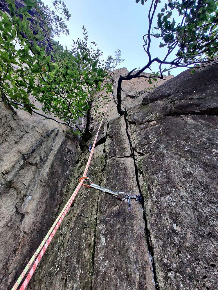 Besonders die mittleren 2 Seillängen sind sehr lohnend. Die oberste Länge kann man sich auch evtl. sparen, die Kletterei ist hier sehr brüchig und nicht mehr wirklich lohnend.