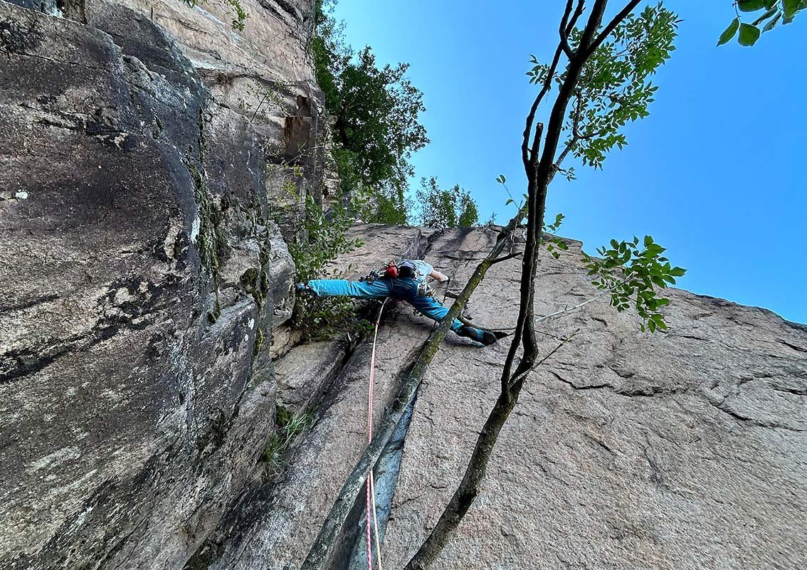 Der Haselburgriss ist eine kurze, aber geinale Rissklettertour an den Seitner Wänden. Wer sich durch Erde und etwas losen Blöcken den Weg in die 2. Seillänge gebahnt hat, wird definitiv belohnt. Es folgen zwei Seillängen geniale Riss- und Leistenkletterei vom Feinsten - ein Handjam hier, ein Faustklemmer da. Die letzte Seillänge führt nochmal durch etwas unangenehmes brüchiges Gelände, bis man dann wieder zurück an den Einstieg abseilt. Der Haselburgriss ist eine perfekte Halbtagestour für Tradkletter-Liebhaber!
