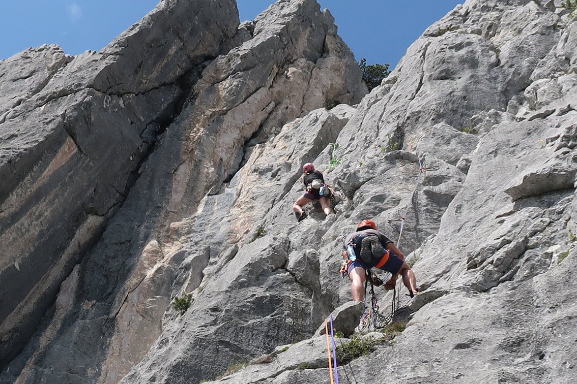 Abseilen direkt über die Route (siehe Topo - 3 x abseilen über die Route).