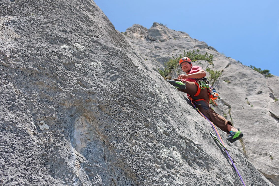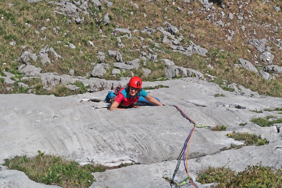 Eine kurze Stelle 6, die man aber sehr gut mit Hakenhilfe klettern kann. Meist um 5