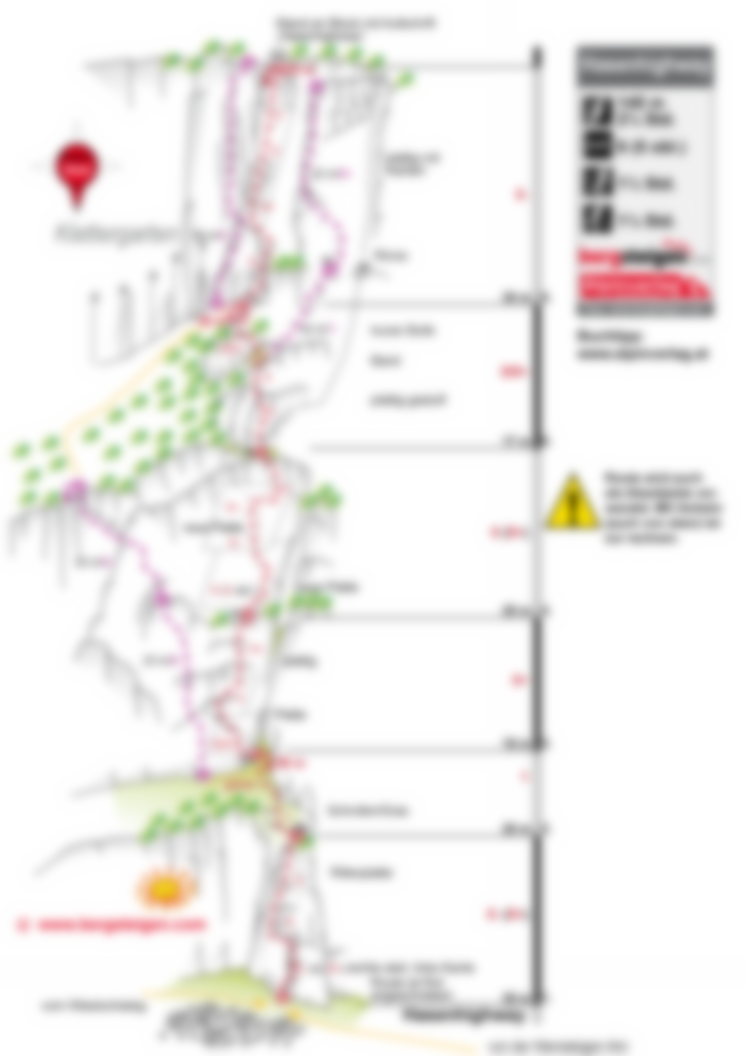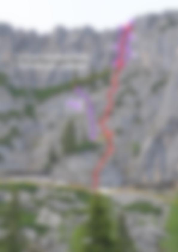 Siehe Topo! Die Schlüsselstelle ist eine kurze, sehr gut abgesicherte Plattenstelle am Beginn der 4ten Seillänge. Oben und in der Mitte kann man auch auf die Nachbarrouten ausweichen - siehe Übersichtsbild und Topo.