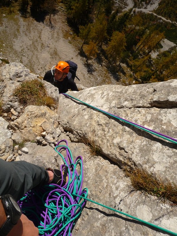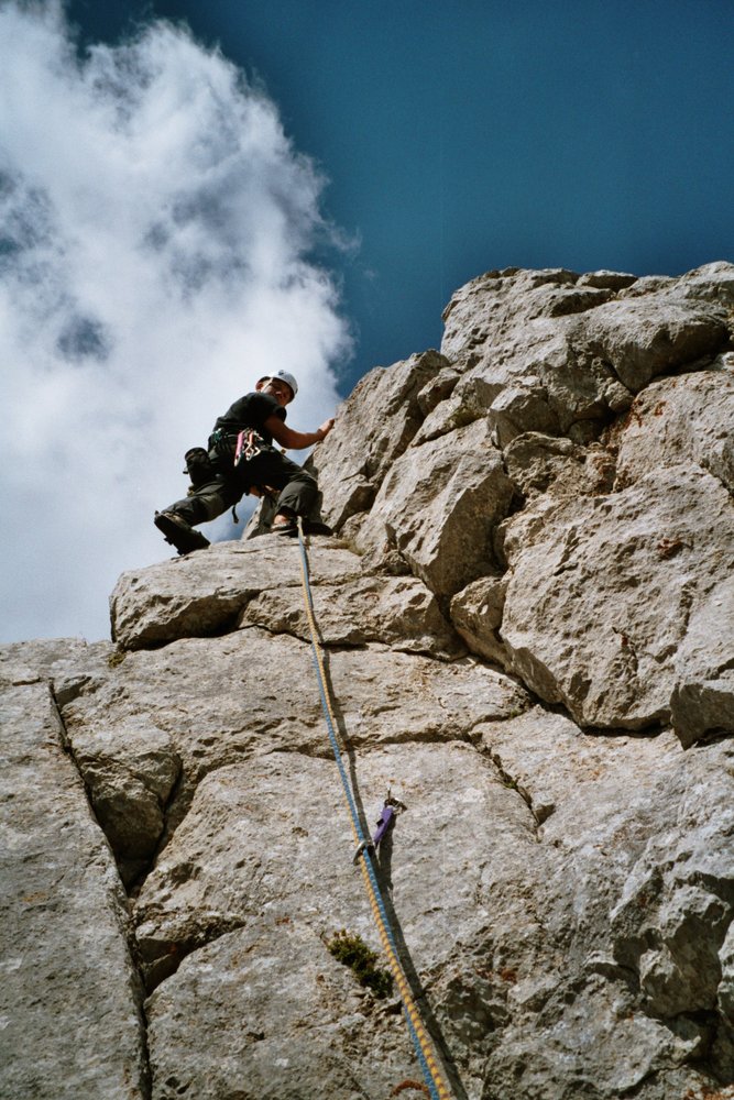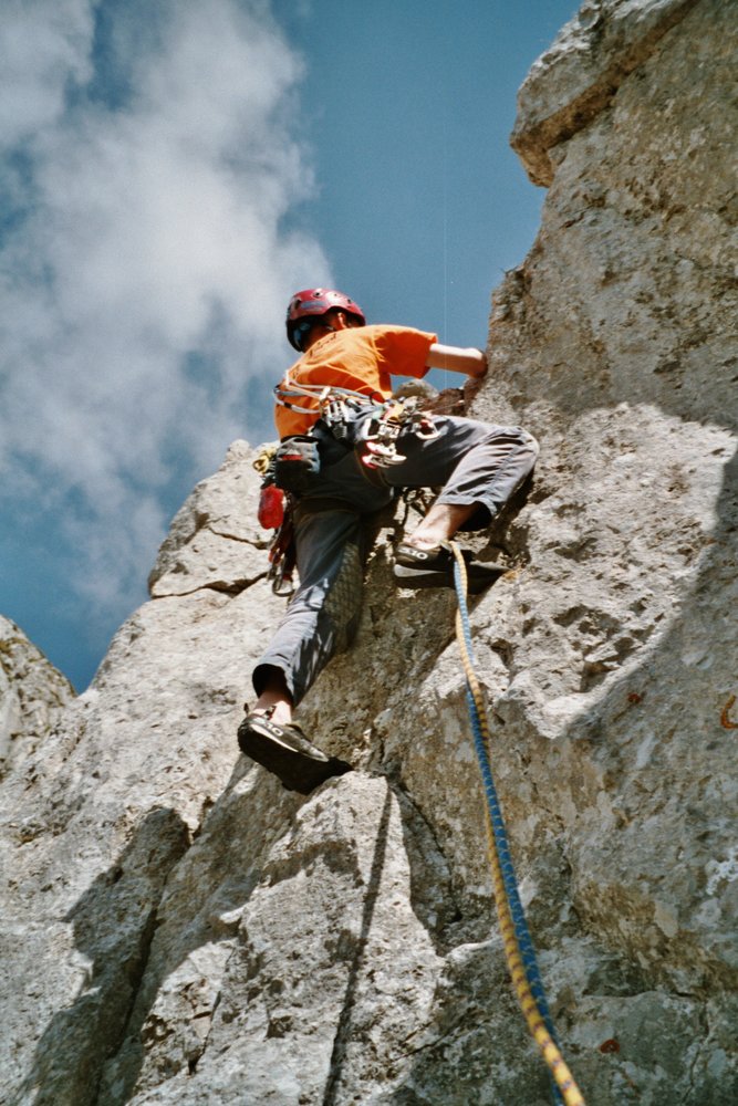 Lange alpine Kletterei in großteils festem Fels und großartiger Umgebung. Teilweise ausgesetzte Passagen.