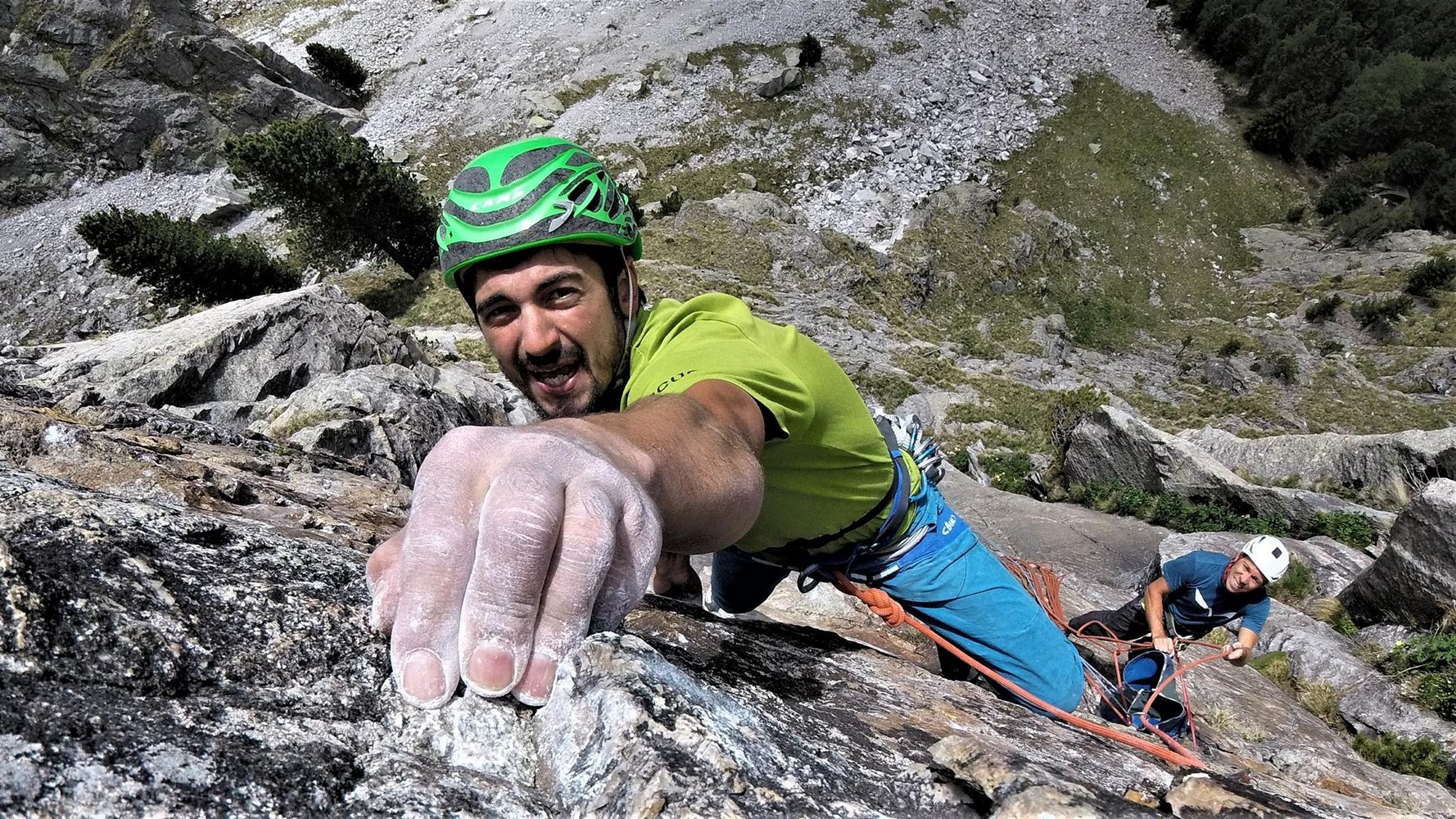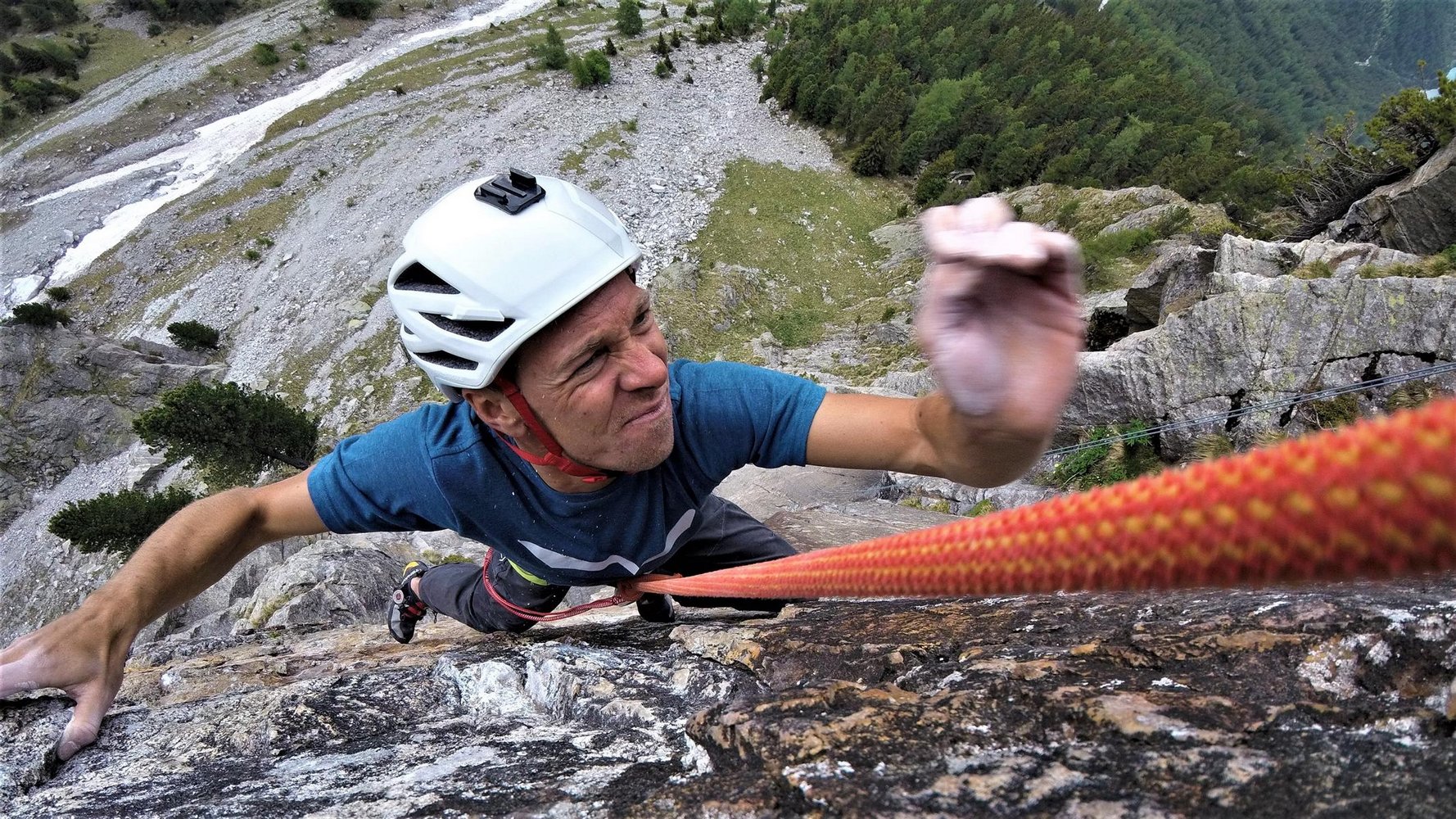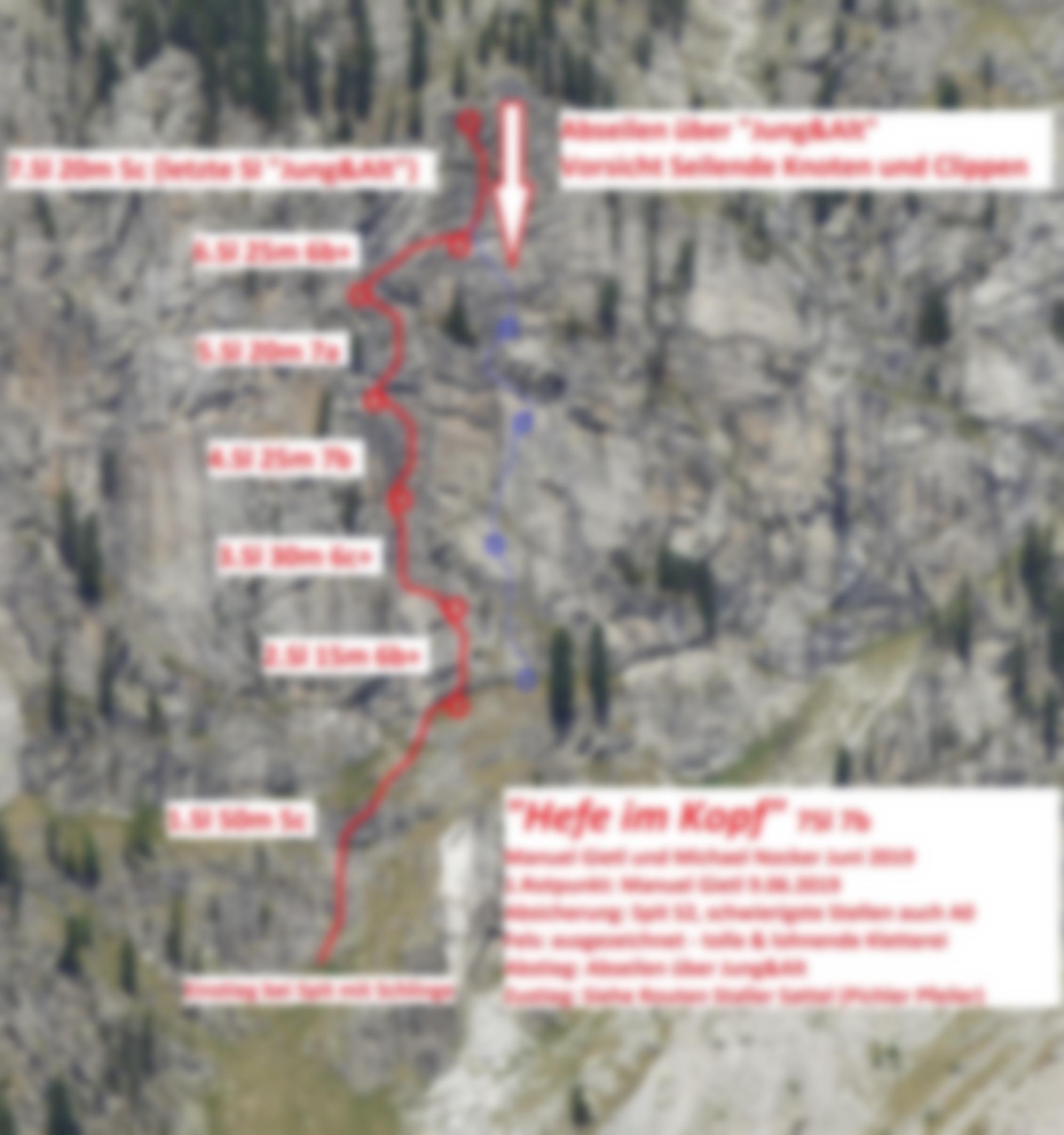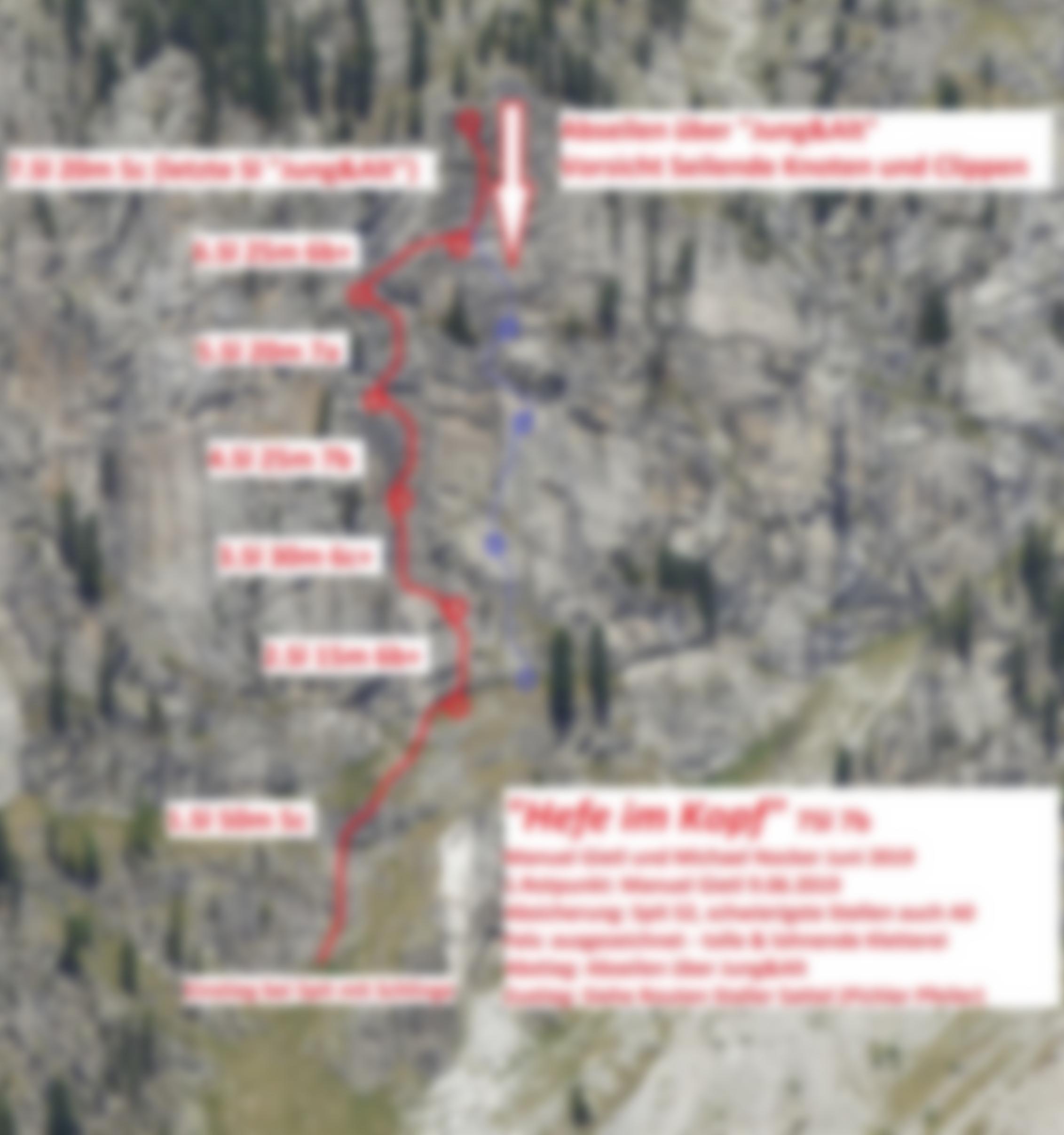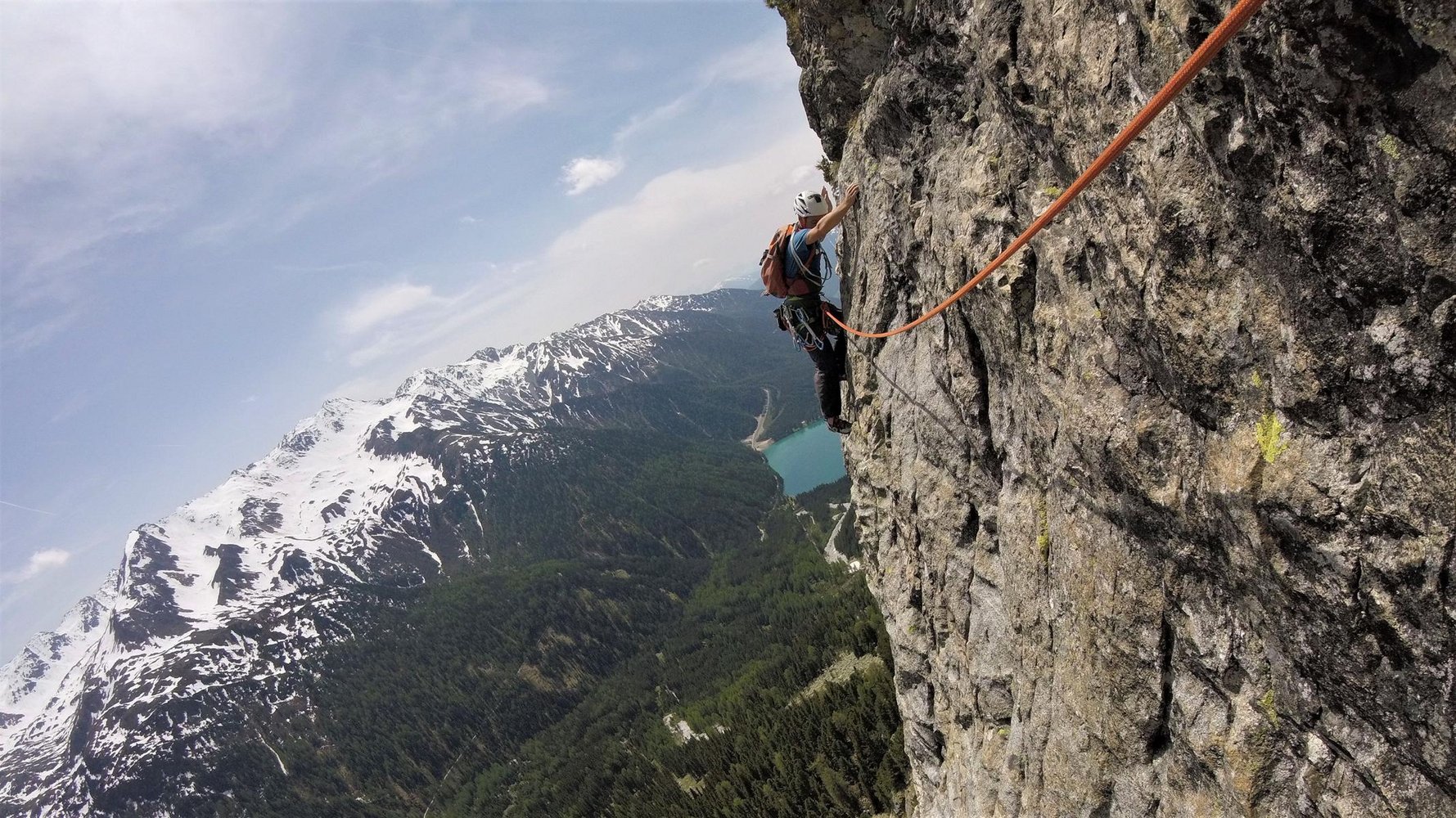 Die "Hefe im Kopf" zieht am rechten Pichler Pfeiler hoch. Da dieser Wandteil etwas steiler ist, gestaltet sich die Kletterei ausdauernder. Der Fels ist nahezu perfekt. Insbesondere nach der Einstiegsseillänge wird er mit jedem Meter fester und genussvoller.