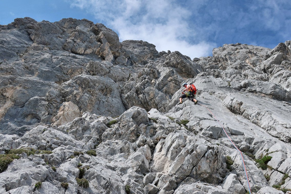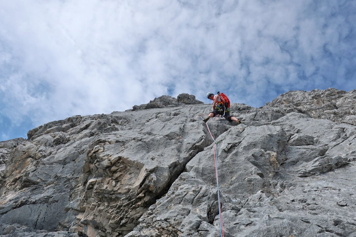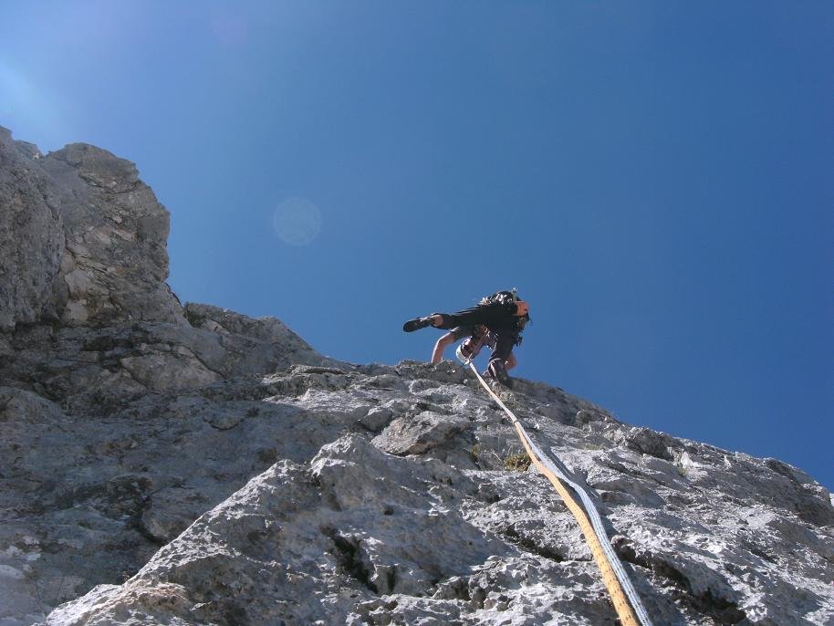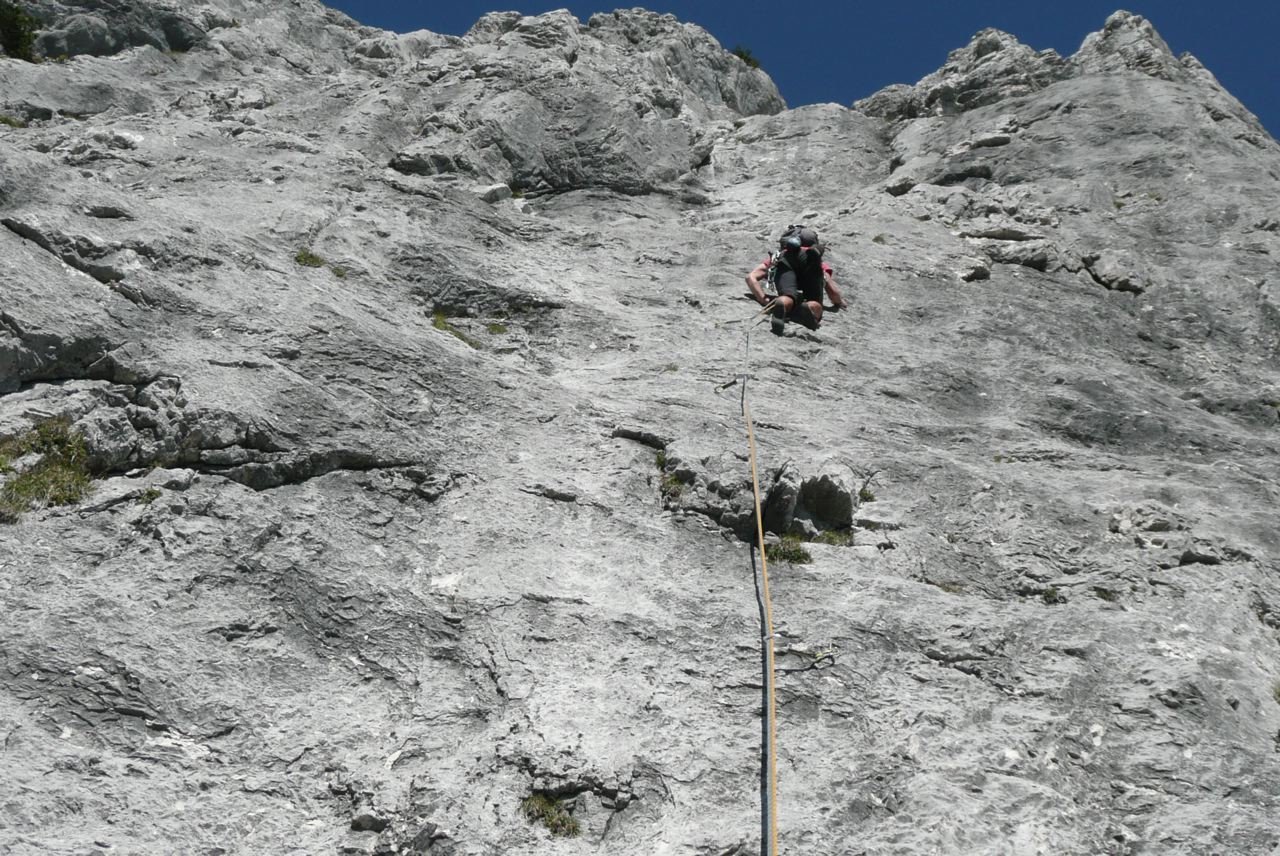 Der Vorsteiger sollte ein solides 6er Niveau haben, damit die Seilschaft am Ende auch wirklich den Ausstieg erreicht.