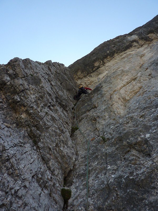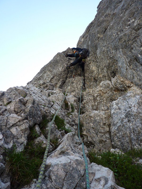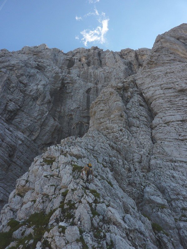 Die Helba mit dem Gorenjska-Ausstieg (im deutschsprachigen Raum auch als Oberkrainer-Ausstieg bekannt) war lange Zeit berüchtigt im deutschsprachigen Raum. Und natürlich ist die Route schon aufgrund der Länge anspruchsvoll und ernsthaft und verlangt den erfahrenen Alpinkletterer - es ist immer noch eine julische Route. Aber sie ist auch nicht anders als klassische Touren ähnlicher Länge in den Dolomiten (z.B. Civetta). Klar sind kurze Passagen brüchig, insgesamt ist die Felsqualität jedoch - vor allem für julische Verhältnisse - gut.
