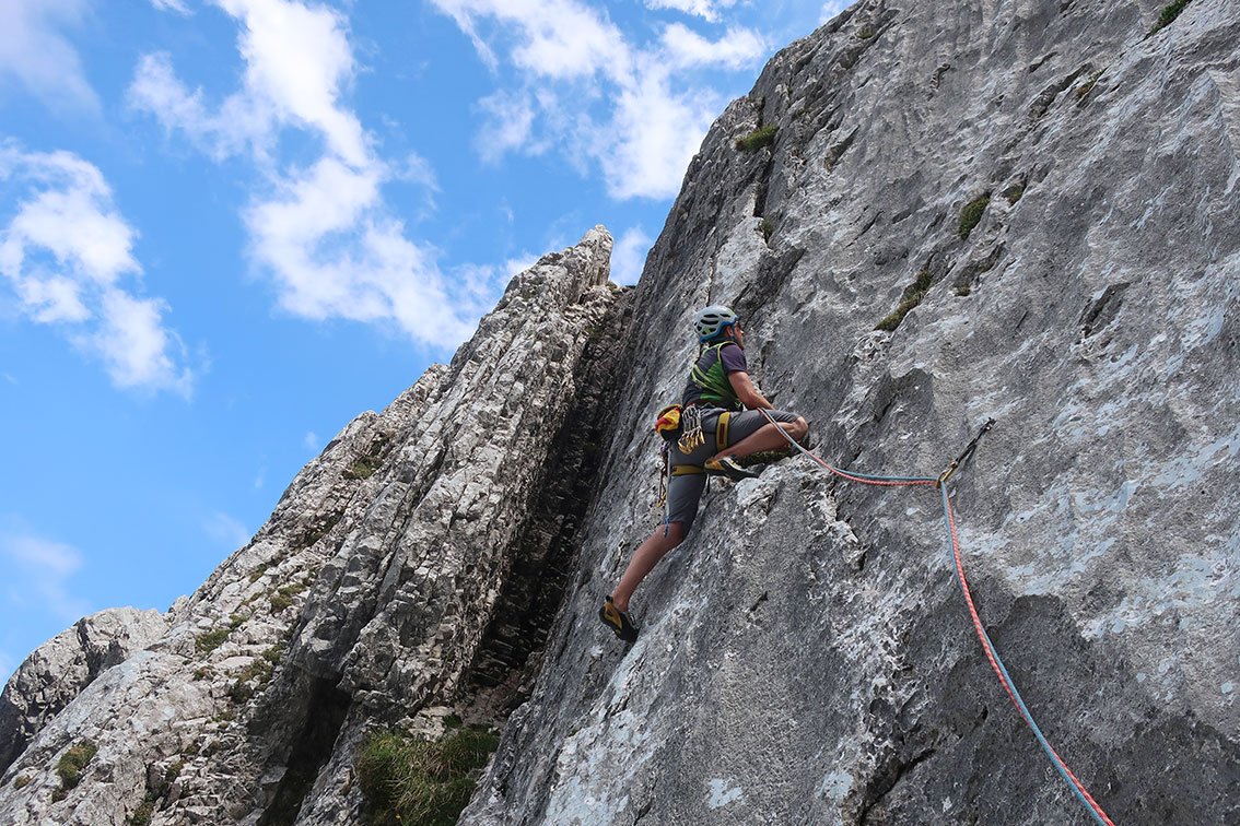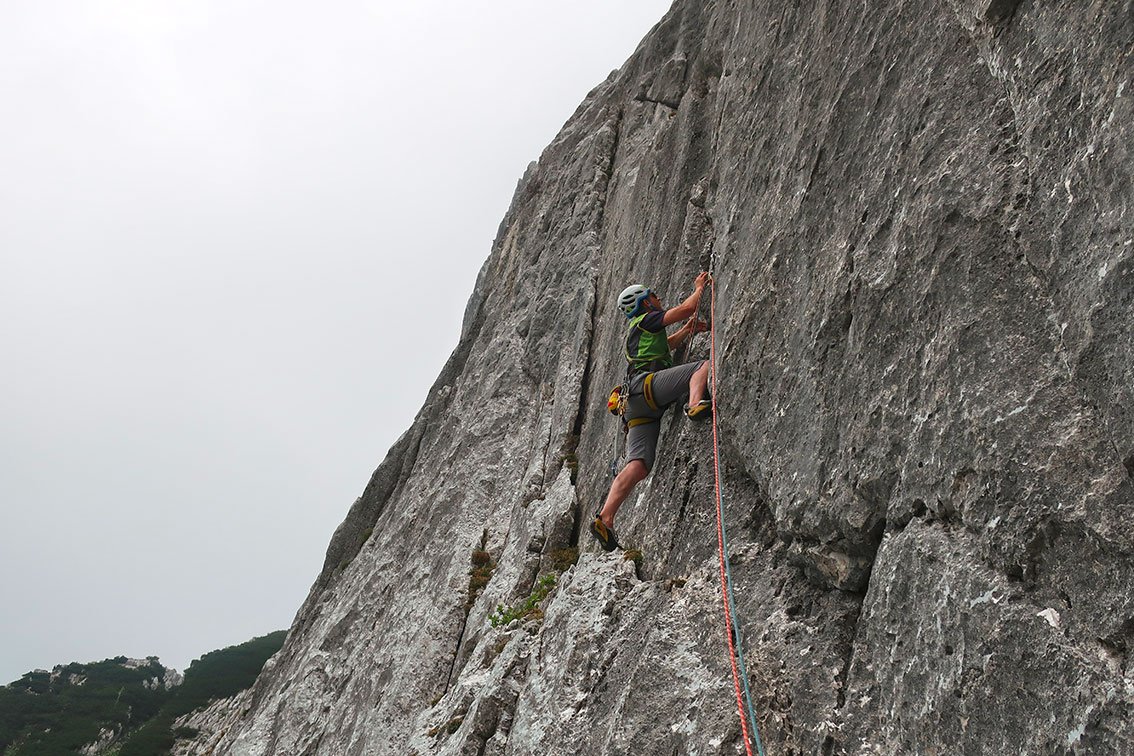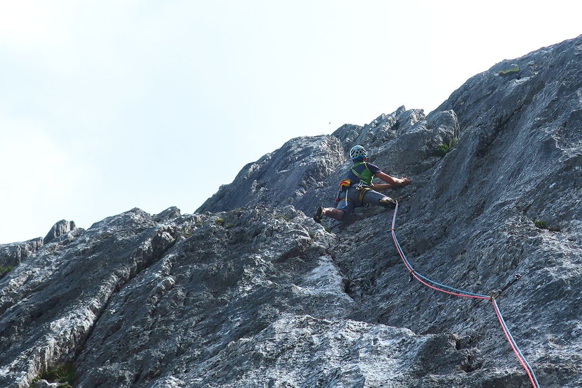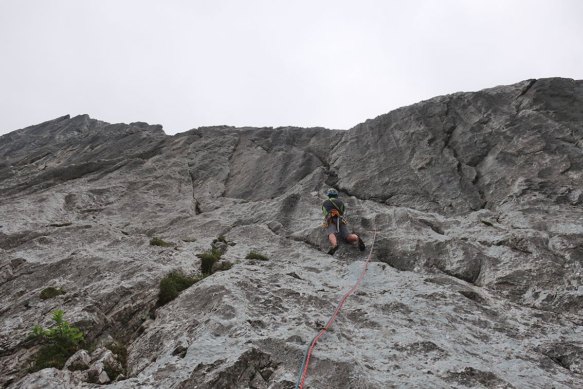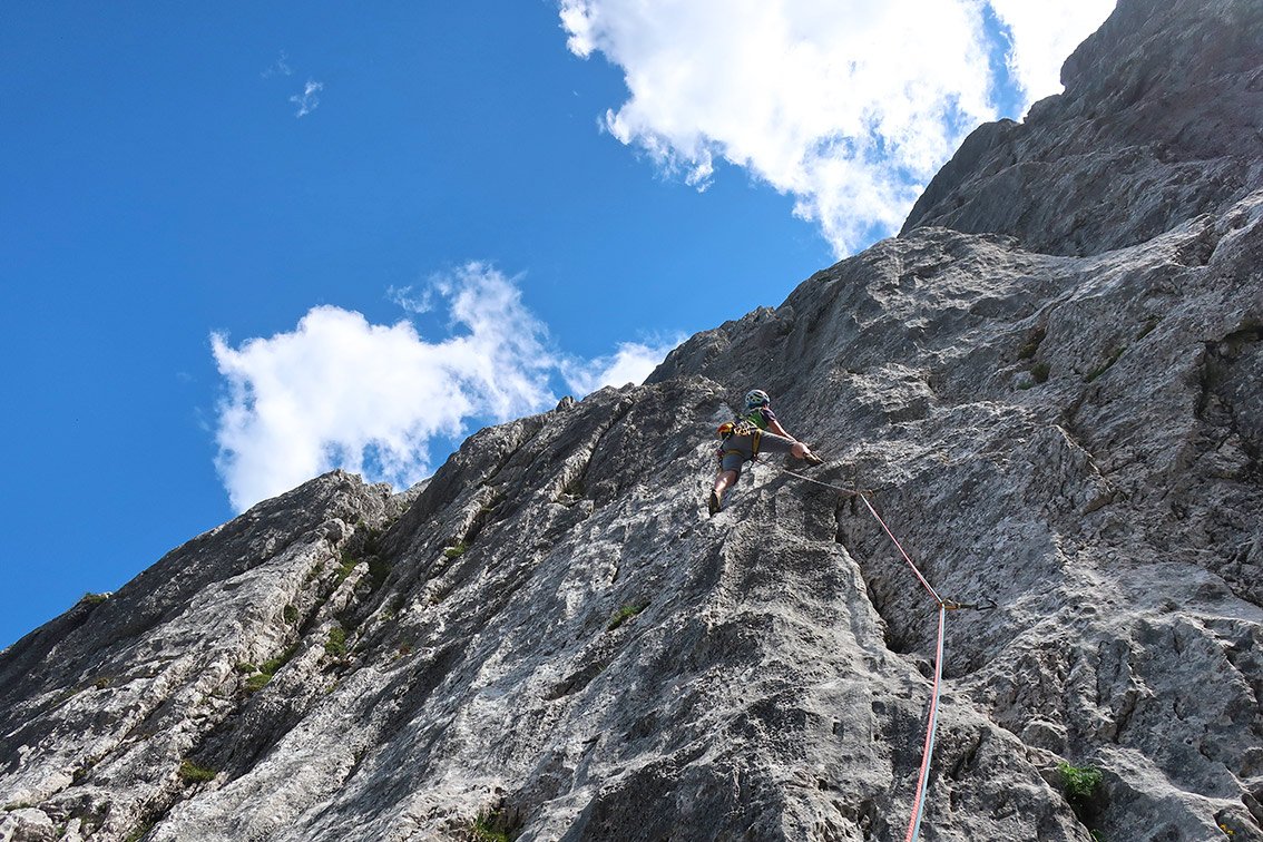Gut mit Bohrhaken abgesichert - aber kein Plaisir, man muss schon etwas klettern.
