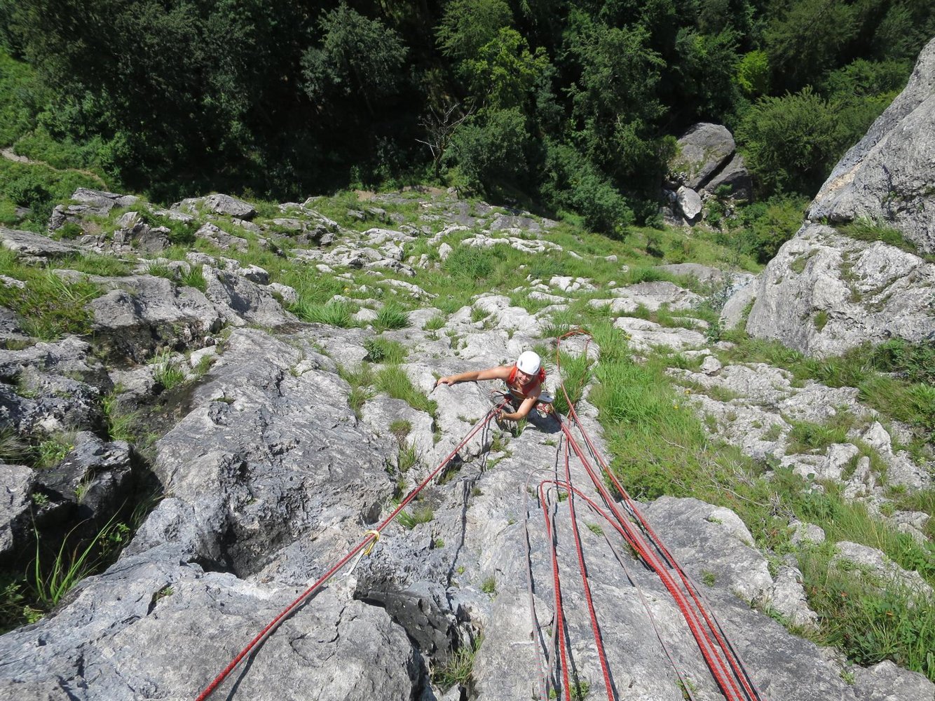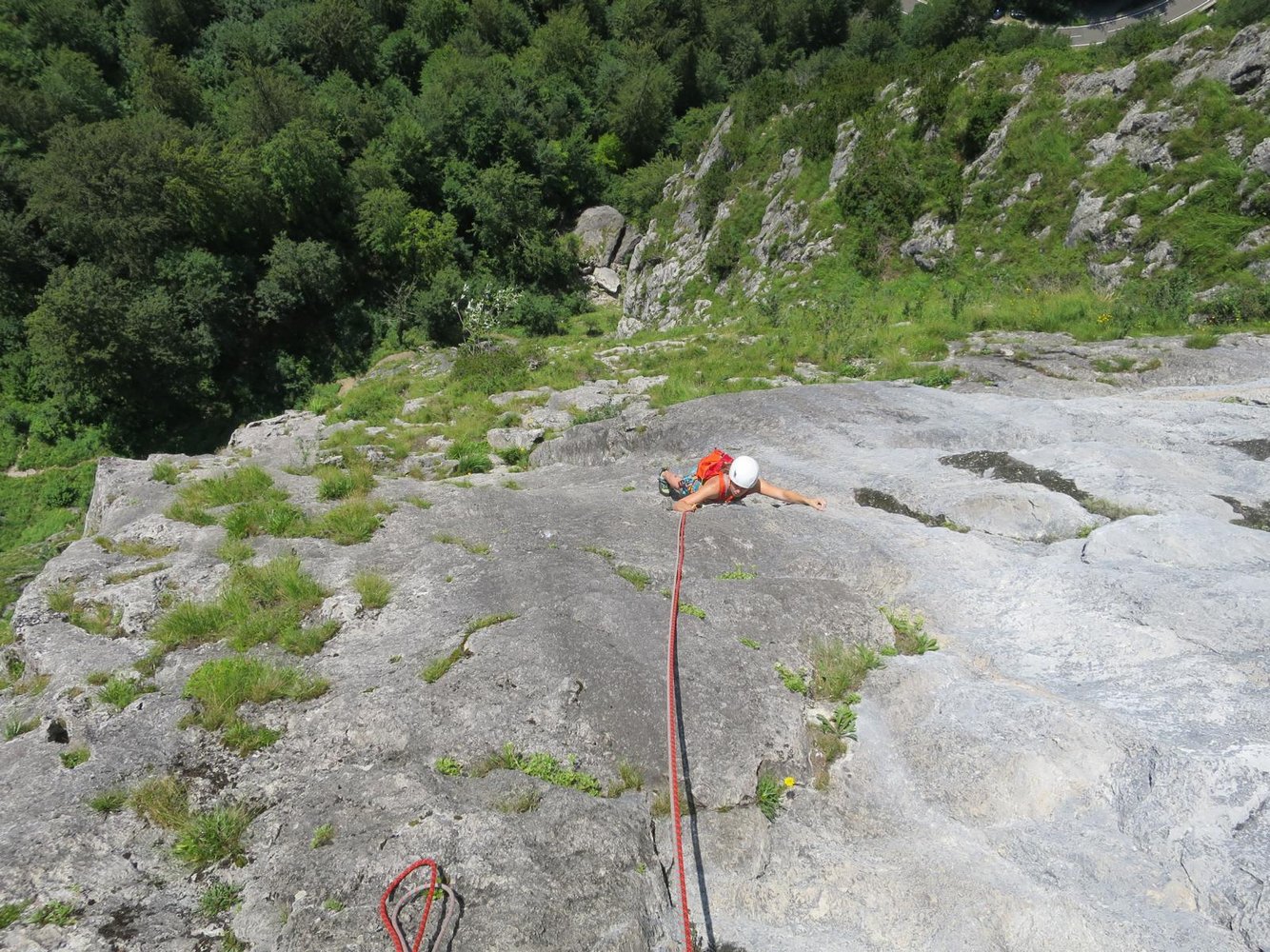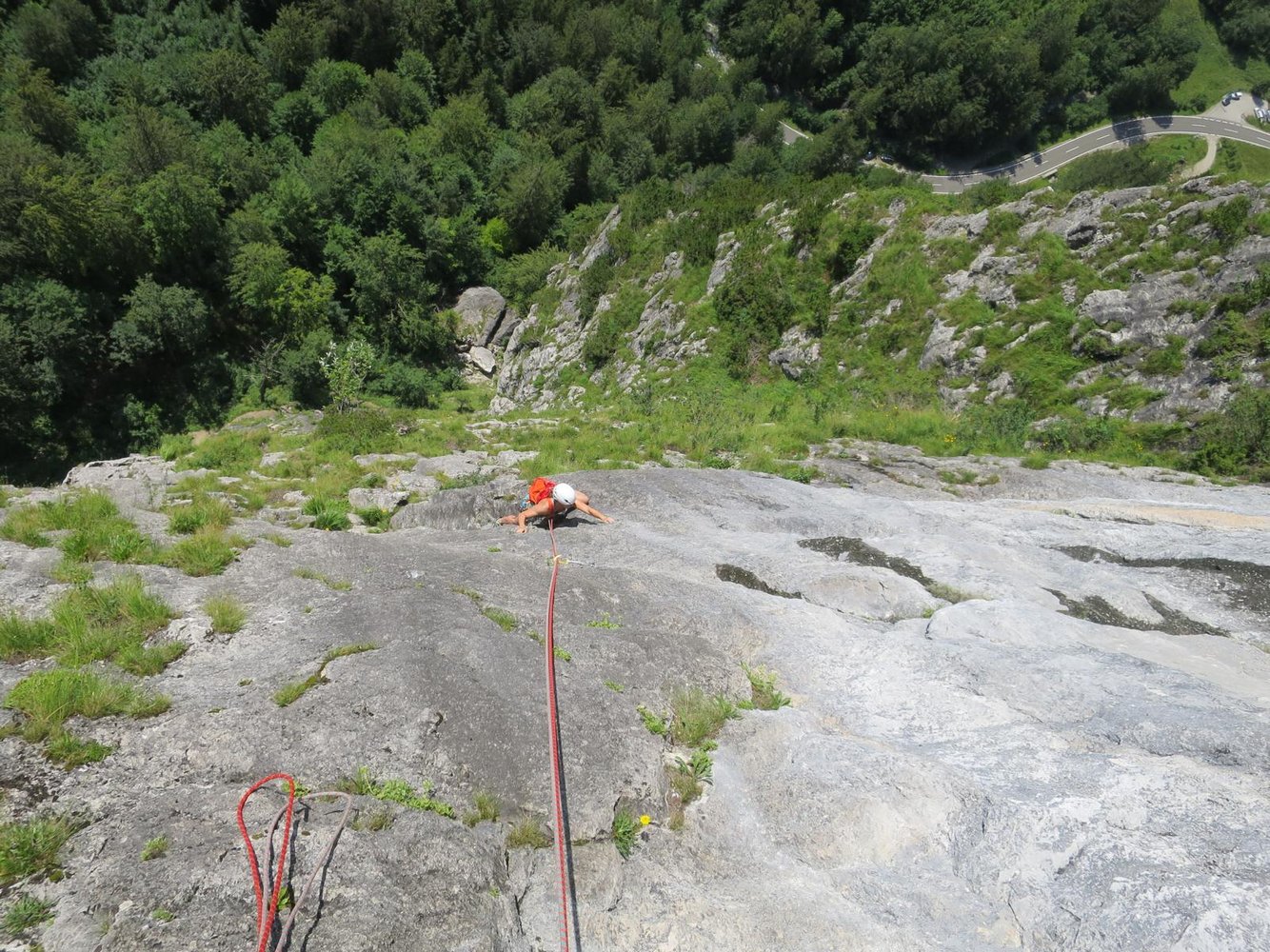 Schöne Route an rauem, griffigem und häufig auch sehr henkeligem Fels. Die Kletterei bietet relativ konstante Schwierigkeiten und stellenweise auch etwas Gras, was aber nicht stört. Die Tour wird nach oben hin immer schwieriger, glatter und auch anspruchsvoller. Die Crux wartet nach dem letzten Bolt. Für alle die sich oben schwer tun, einst war diese Stelle nur mit 5+ bewertet ;-)