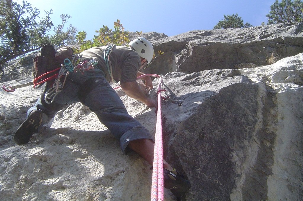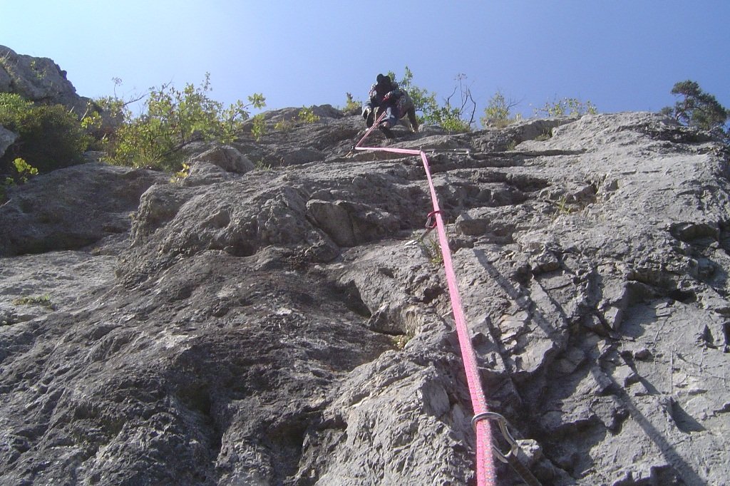 Die Route ist relativ gut mit Bohrhaken gesichert.