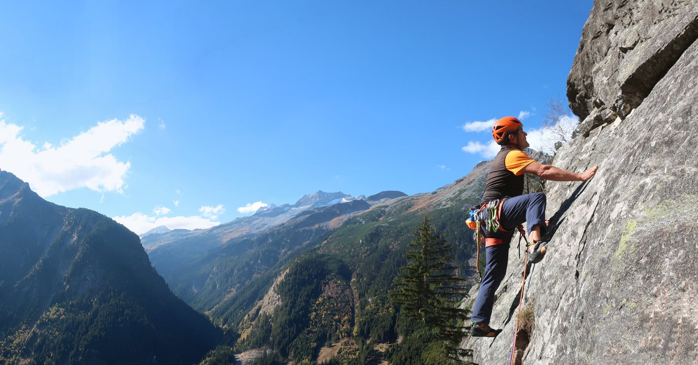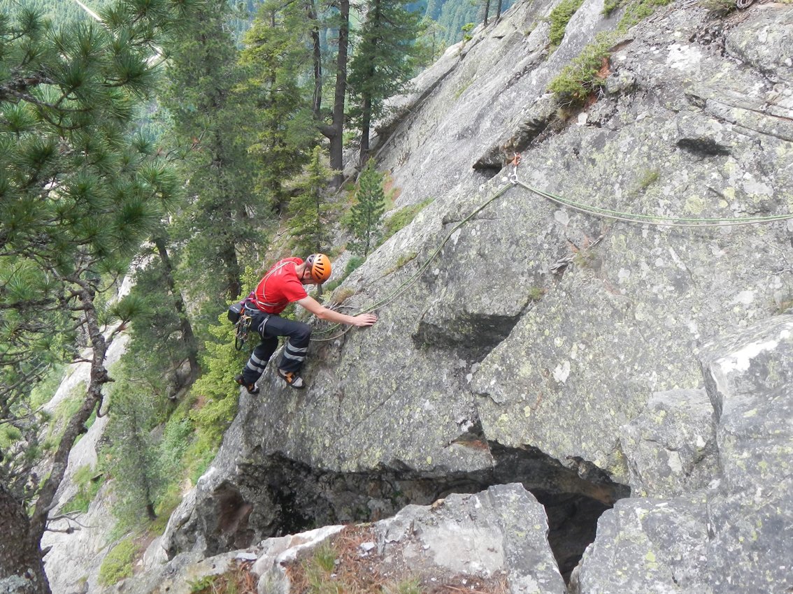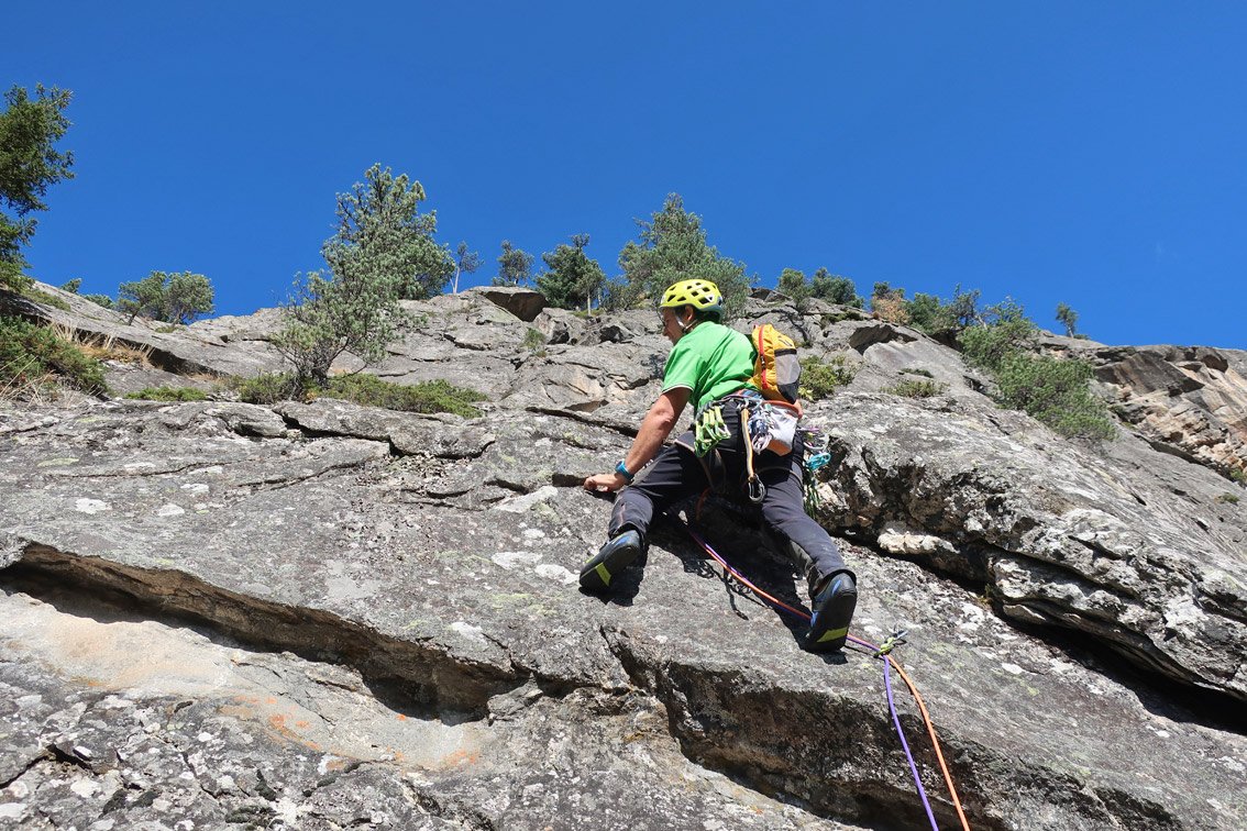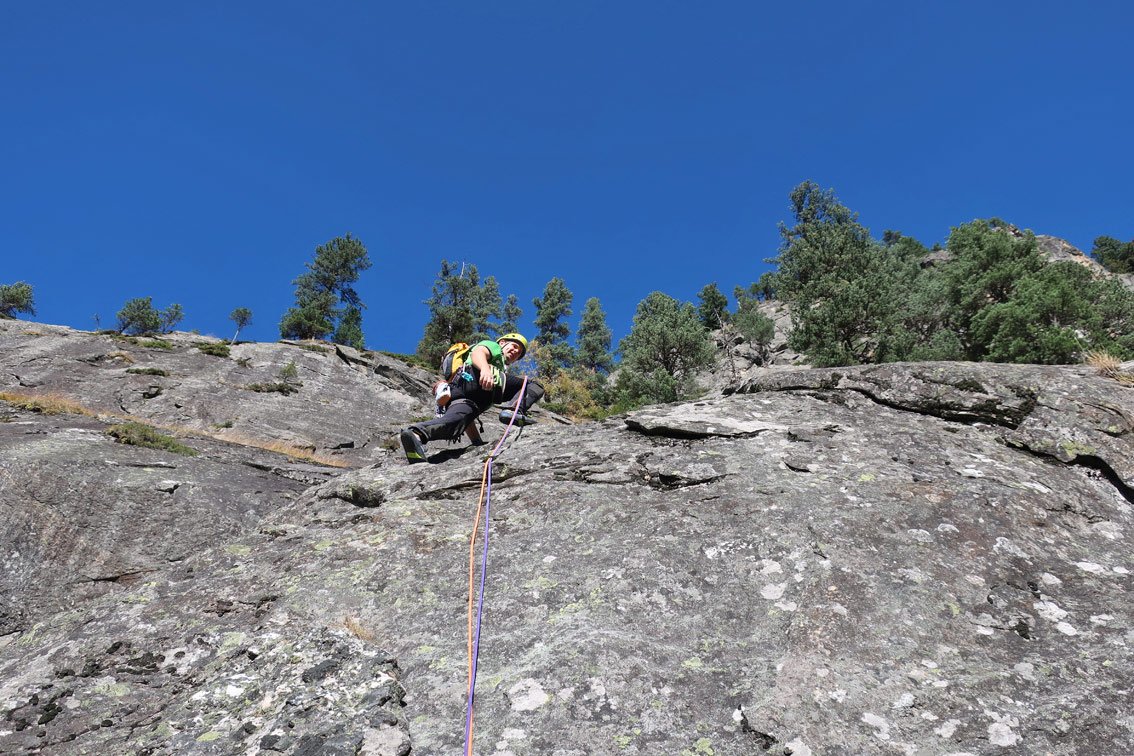 Sehr gute und wunderschöne Route, die perfekt mit Bohrhaken abgesichert ist. Die Kletterei wechselt zwischen griffi gen Platten, steilen, mit Quarzsteinchen bespickten Wandstellen und tollen Rissschuppen, glatte Passagen gibt es nur wenig. „Herzblut“ gehört zu den besten leichteren Mehrseillängenrouten im Zillertal - der Besuch lohnt sich absolut!