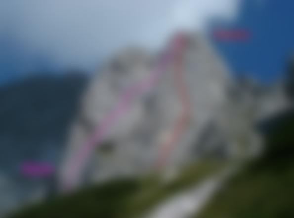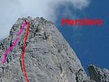 Von der Werfener Hütte in max. 5 min zum Einstieg links vom Südgrat.