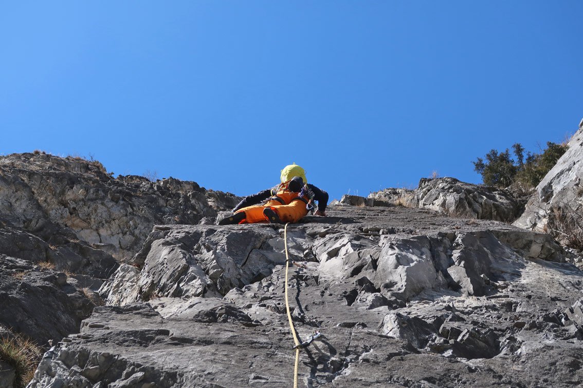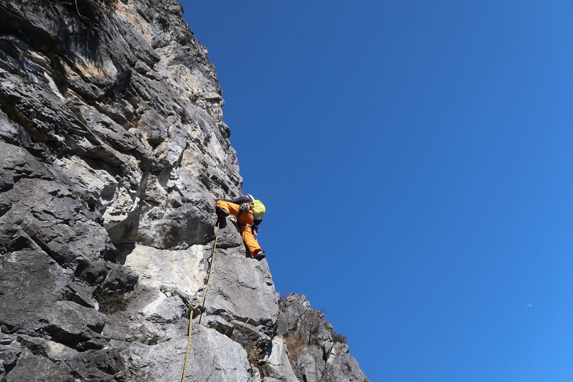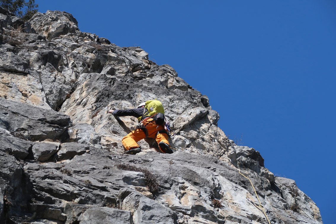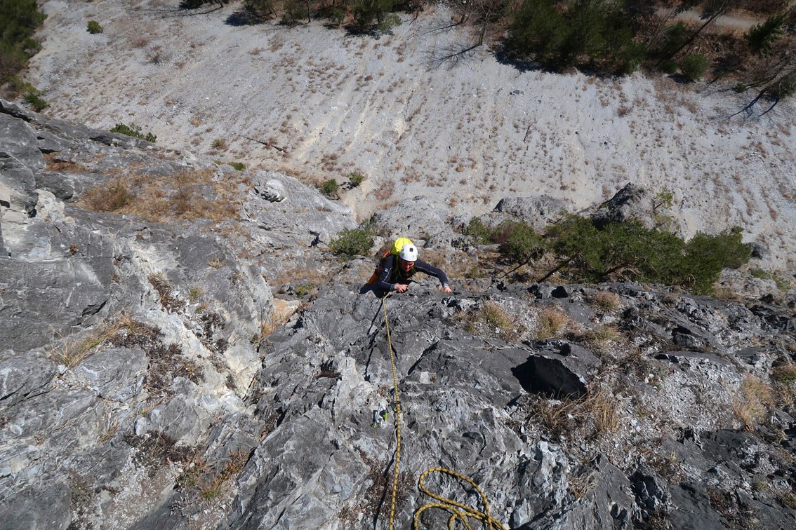 Vor allem in der ersten und letzten Seillänge ist nicht jeder Griff fest, aber auch in der restlichen Tour sollte man etwas vorsichtiger klettern und auf jeden Fall einen Helm tragen!