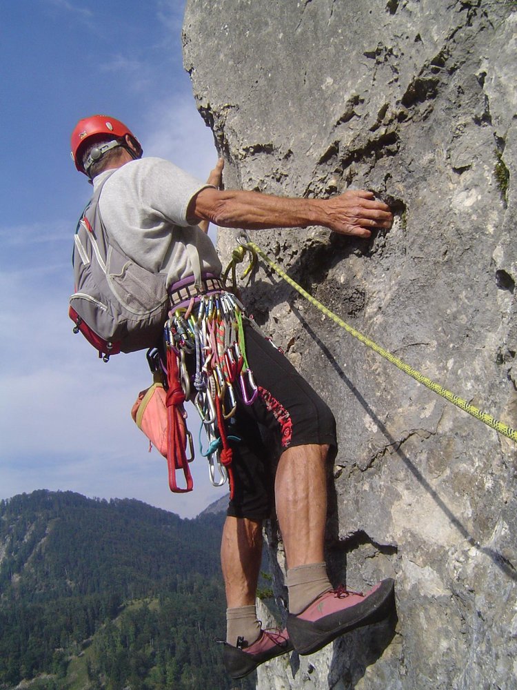 Neun Seillaengen 8/8+(6+/A0): 4-, 6+, 6+, 7-, 6+, 8+(A0), 7+(A0), 5+ und 7(A0)