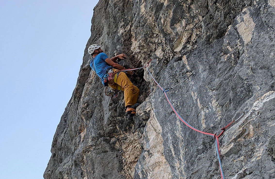 Nach reiflicher Überlegung entschloss sich der Erstbegeher die Tour allein von unten zu erschließen. Die Gewissheit, jede Entscheidung selbst zu treffen, macht so eine Solo-Erstbegehung zum nervlichen Balanceakt, auch wenn diese Wand nicht so hoch ist, war es doch eine Herausforderung. In fünf Tagesetappen konnte Andreas Nothdurfter die Wand durchsteigen - er bedankt sich beim Hüttenwirt Thomas für die moralische und kulinarische Unterstützung.