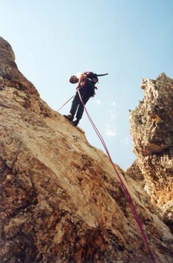 Die Stände 1,3,4,5 sind zum abseilen hergerichtet; Achtung auf Steinschlag beim abseilen - zum abseilen ist unbedingt ein 60m-Einfachseil notwendig. Weiter über Zustieg.