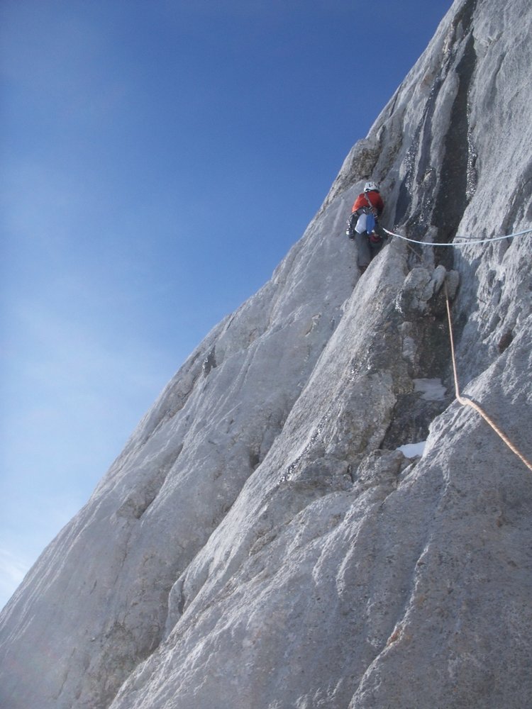 Sehr schöne und abwechslungsreiche Kletterei in der Südwand des Koppenkarsteins. Durch die Sanierung 2002 zu einem Klassiker geworden. Im zweiten Wandteil dominiert teils abenteuerliche Kaminkletterei. Abstieg erfolgt über eine gute Abseilpiste.