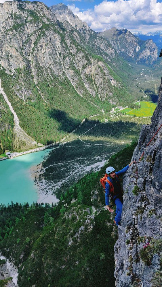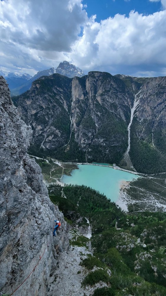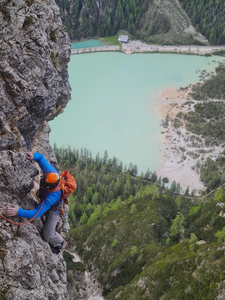 Hunderte Male war man bereits in den weitum bekannten Klettersektoren in der Nähe des Dürrensees. Viele davon bieten einen idealen Blick auf die Nordseite des im Ersten Weltkrieg heftig umkämpften Gipfels des Monte Pianos. Bereits vor einiger Zeit war mir dort ein markanter Pfeiler mit einer recht steilen Wandflucht aufgefallen. Im Laufe dieses Frühlings reifte nun die Idee soweit, dass ich nach einer länger andauernden Schlechtwetterphase im Mai beschlossen hatte, eine Erstbegehung zu probieren. Erstaunenswert war die Tatsache, dass die Wand um vieles trockener und steiler war, als vorher erwartet. Das Vorhaben eine gut gesicherte kreative Linie im Solostil zu erschließen, ließ sich dank großer Motivation und Begeisterung zügig verwirklichen. Die Route bietet überraschender Weise lange, ausdauernde und steile Kletterei im typischen Landrodolomit, der sich streckenweise sogar von seiner besten Seite präsentiert. Das „Hungrige Herz“ könnte sich zur lohnenden Alternative zu den Mehrseillängen-Klassikern in der Rienzwand und Popenawand entwickeln.