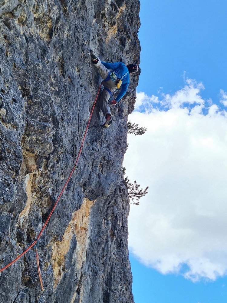 Überraschend steile und recht ausdauernde Kletterei auf typisch steilen Landrodolomit und entlang vor allem im oberen Teil interessanten und kreativen Linienverlauf. Auf jeden Fall eine lohnenswerte Alternative zu den Mehrseillängen - Klassikern im Rienztal und Cadinigruppe. Der anstrengende und wulstige Einstieg lässt sich auch A0 meistern. Nachher pendeln sich die Schwierigkeiten im Bereich 6b ein und bleiben relativ konstant.