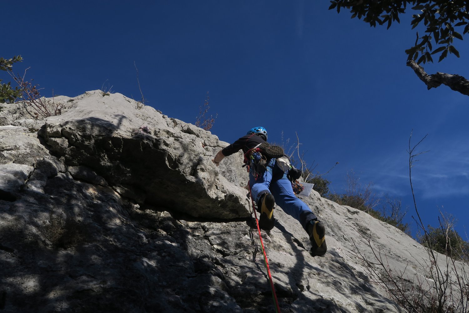 Der Fels ist meist gut bis sehr gut und weist eine Unmenge an Schratten, Karren, Löchern und Schwarten auf; alles was die Erosion halt so aus dem Kalk zaubern kann. Wenig los ist da oben aber nicht, denn gerade im Winter scheint die Sonne relativ lang in die Wandln, v.a. in die höher gelegenen. Manche Routen weisen auch schon ordentliche Gebrauchsspuren auf. Ein weiterer Pluspunkt ist die Möglichkeit, nach der Kletterei auf einen richtigen Gipfel mit 900-Meter-Tiefblick auf den Lago zu steigen.
