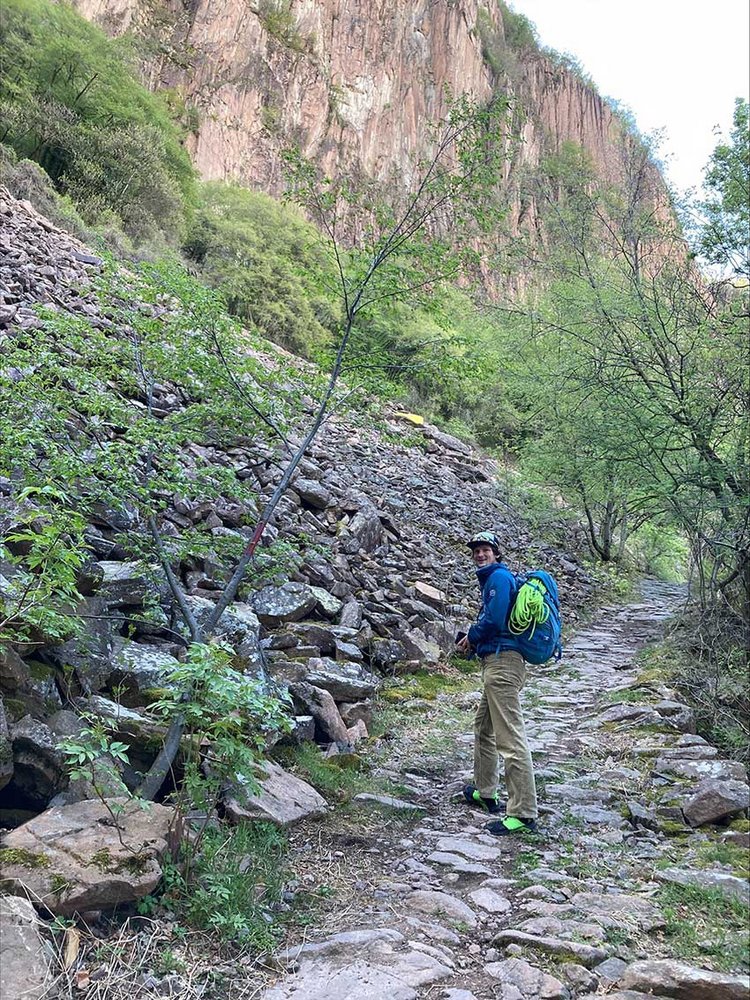 14 Expressschlingen (wenn man die fixen Exen nicht will und eigene Expressschlingen dazu hängt, dann 17 Expressschlingen), 60 m Doppelseil, Abseilgerät und Helm.