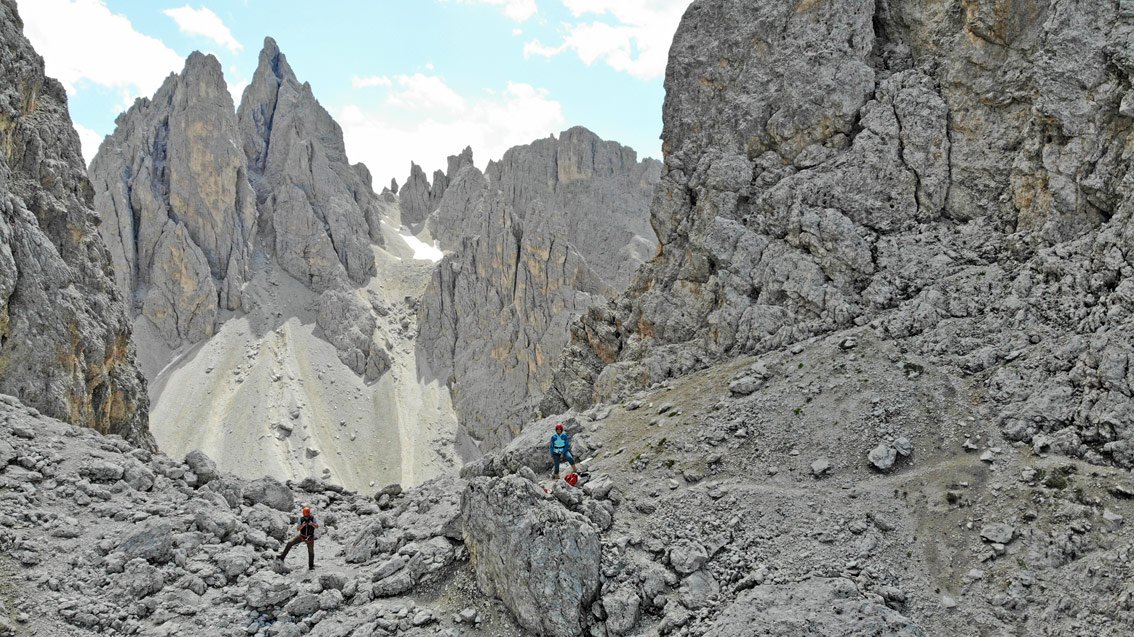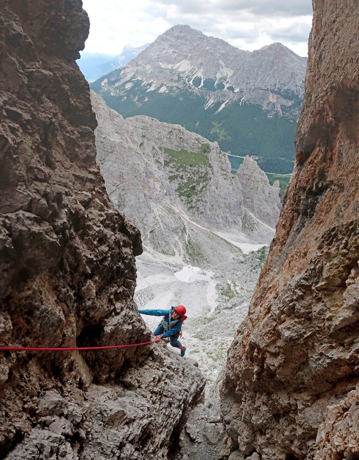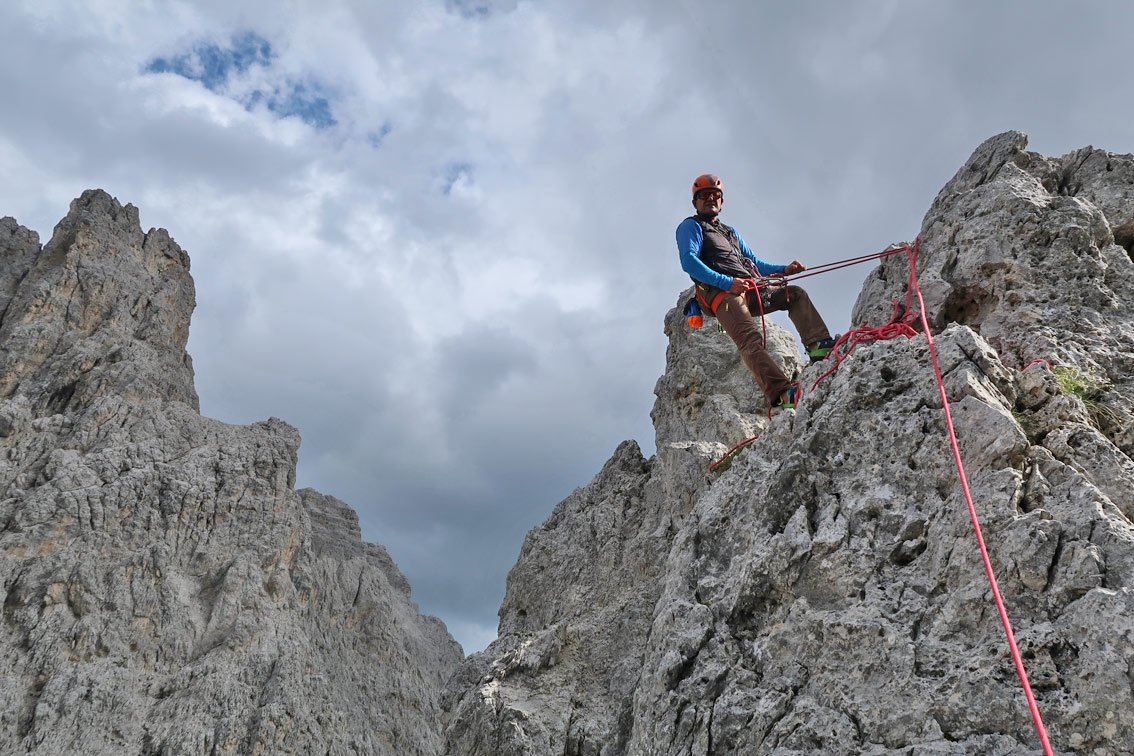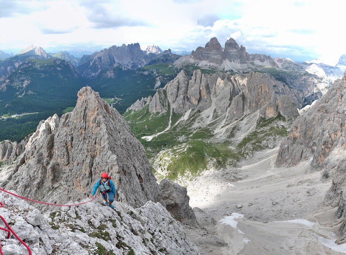 Recht luftige und ausgesetzte Kletterei, die einen perfekten Einstand in das Dolomiten-Klettern bietet!