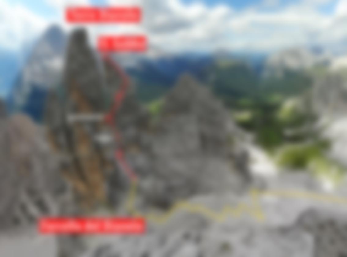 Fantastischer Dolomiten-Klassiker auf einen wilden Felszapfen, den sogenannten Il Gobbo. Die Führe bietet Wand-, Kamin- und Gratkletterei vom Feinsten - oft ist man recht ausgesetzt und hoch über dem letzten Bohrhaken unterwegs. Der Fels ist perfekt fest, vor allem für diesen Schwierigkeitsgrad! Der Kamin und der Abschlussgrat sind sehr luftig. Der Kamin macht zuerst einen etwas schweren Eindruck, doch wenn man ihn schön ausspreizt geht es dann leichter als es aussieht. Auch das Abseilen ist für so eine leichte und kurze Route spektakulär. Ein toller Dolomiten-Klettertag mit Drei-Zinnenblick!