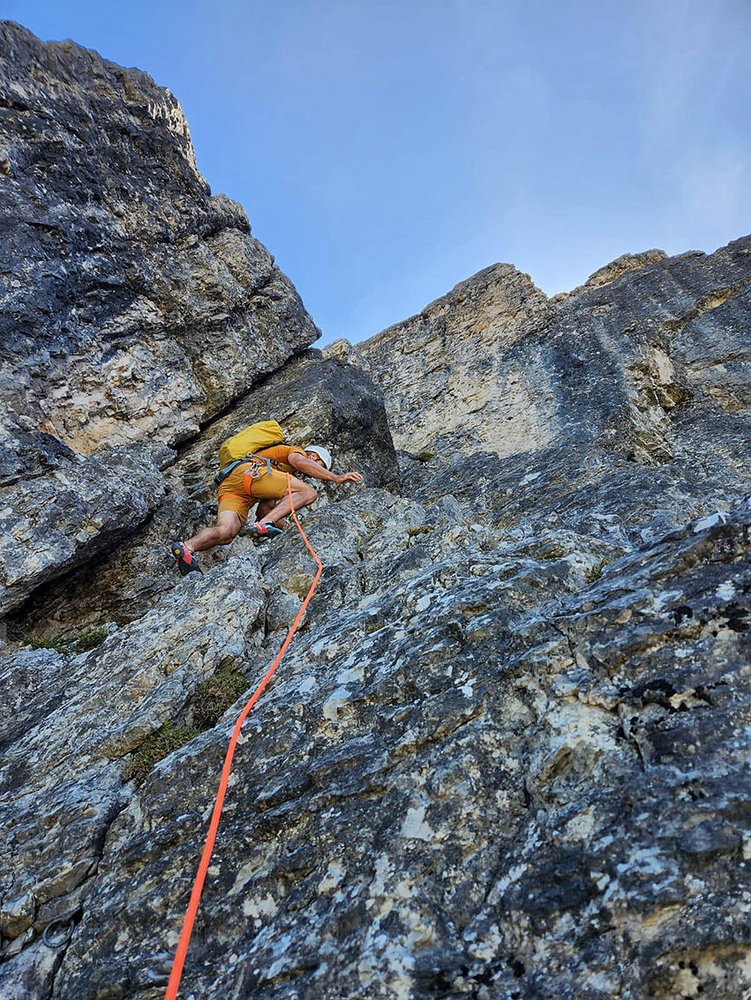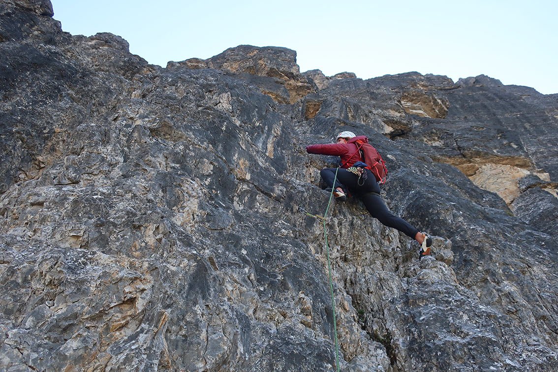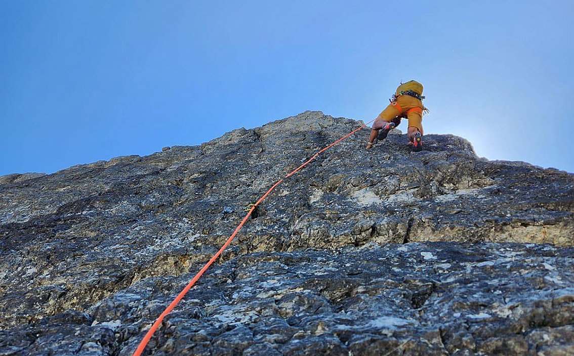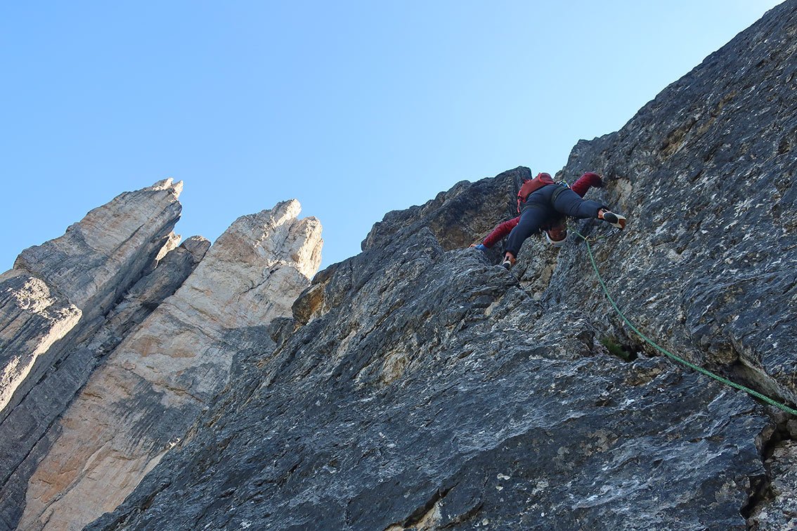 Ein kleines Nordwandabenteuer - ungefähr so könnte man die Route "In Memoriam Georg" an der Elferkofel Nordwestwand beschreiben. Schon beim meist noch kühlen Zustieg, aber spätestens am schattigen Einstieg ist man in der Nordwandwelt angekommen. Die Route ist alpin angehaucht, zwischen den Bohrhaken muss man im einfachen Gelände etwas weiter klettern, das ein oder andere Schuttfeld und auch Schrofengelände müssen überwunden werden. Die Route wurde aber ausreichend mit Bohrhaken bestückt, so macht das Klettern durchwegs Spaß. An heißen Sommertagen ist die Route für schon etwas versiertere Mehrseillängenkletterer eine Empfehlung und ein landschaftlicher Hochgenuss.