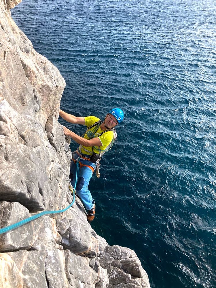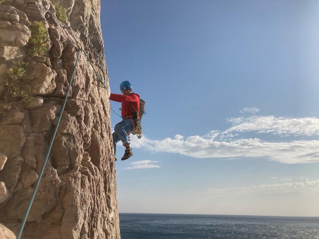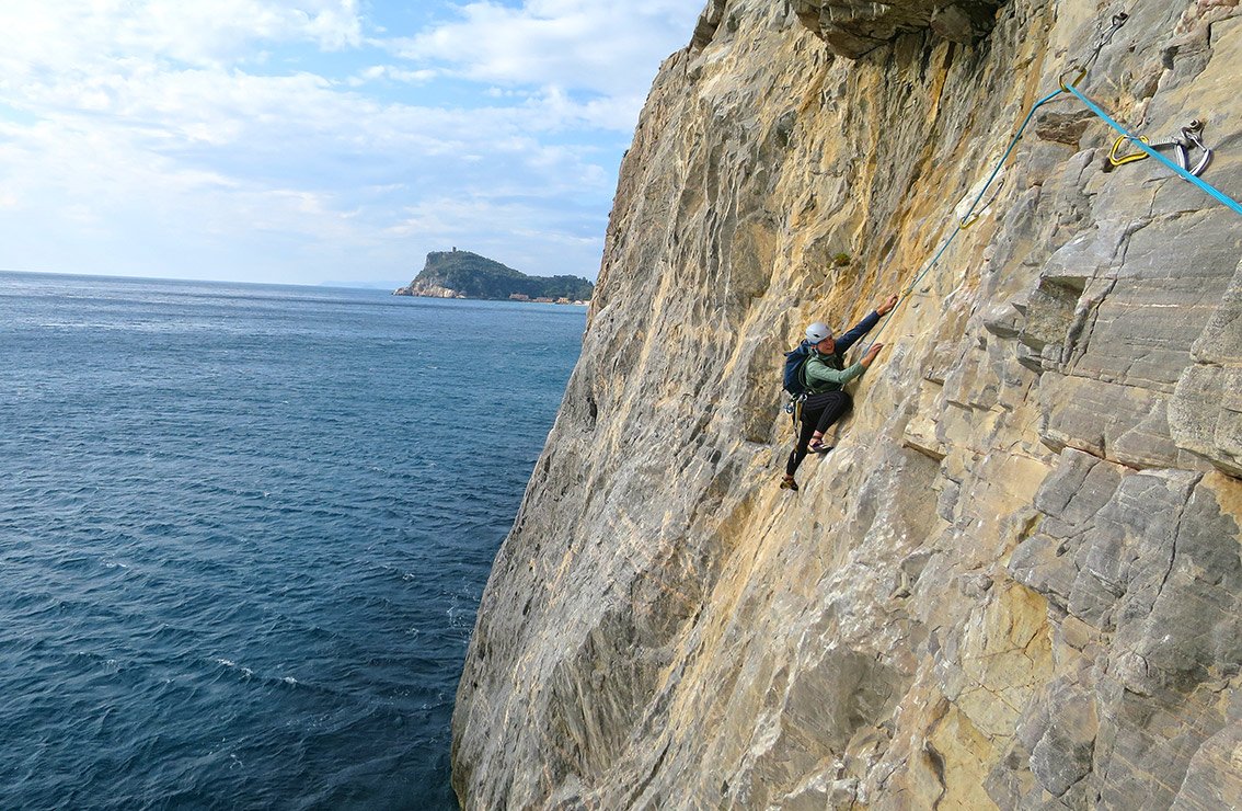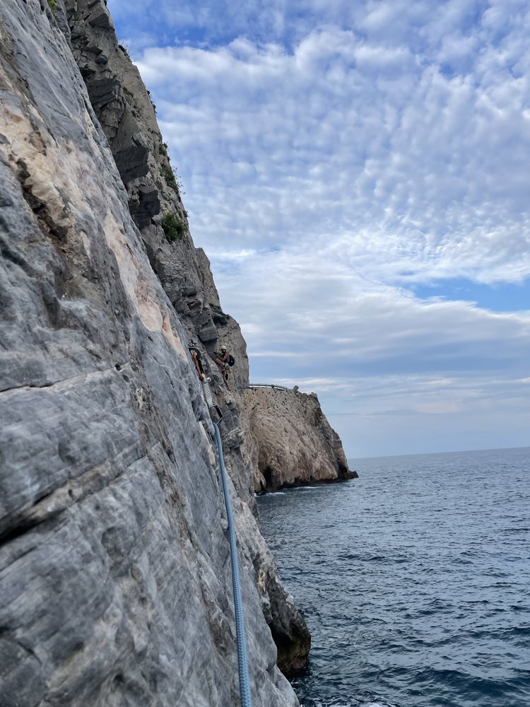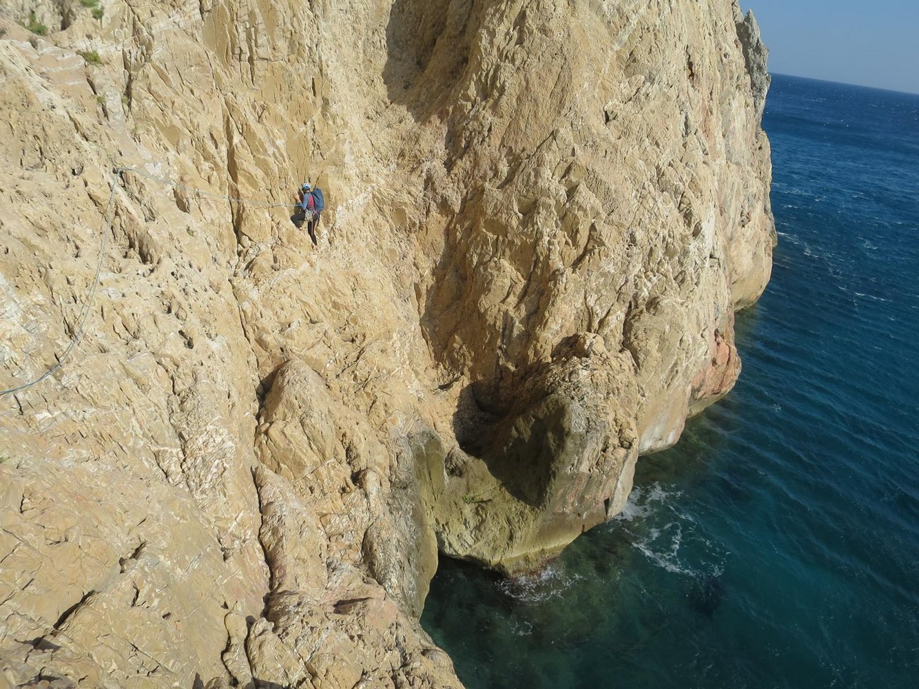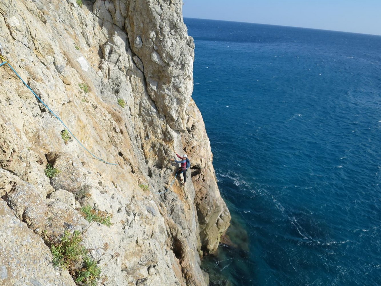 Die lange und großartige Traverse verläuft auf 400 m immer wenige Meter über dem Meer und bietet so ein einzigartiges Klettererlebnis. Die Schwierigkeiten beschränken sich auf die ersten Seillängen, dann wird es leichter, wobei im leichteren Gelände die Wegfindung schwieriger wird. Die Route ist gut bis sehr gut gesichert, man sollte sich aber bewusst sein, dass die Bolts so nahe über dem Meer stark rosten. An den Ständen stecken daher bis zu vier Stück und selten auch ein Klebehaken.