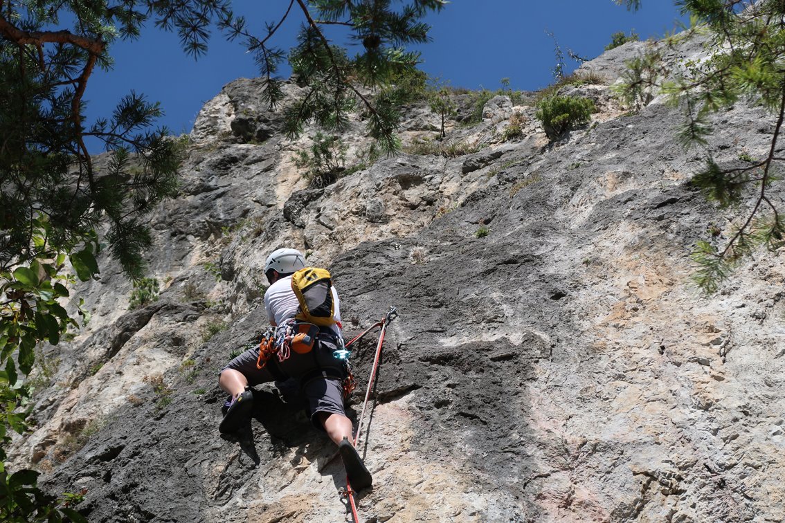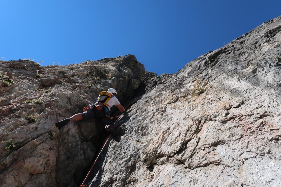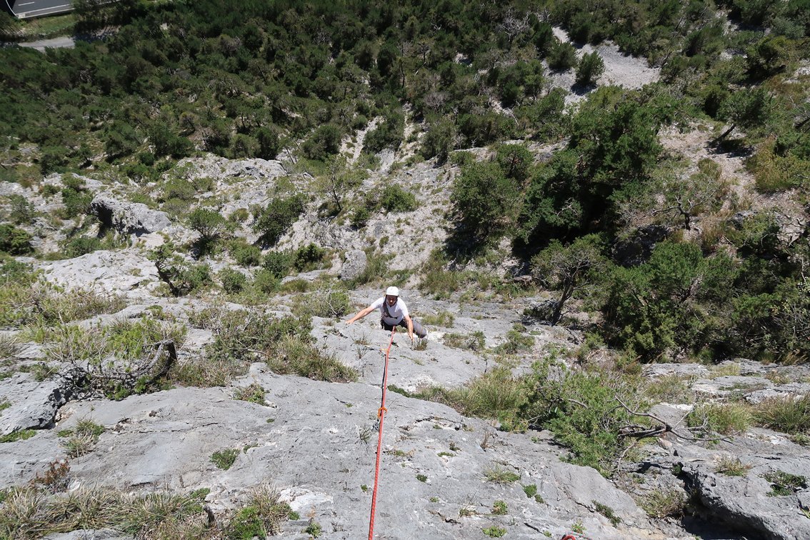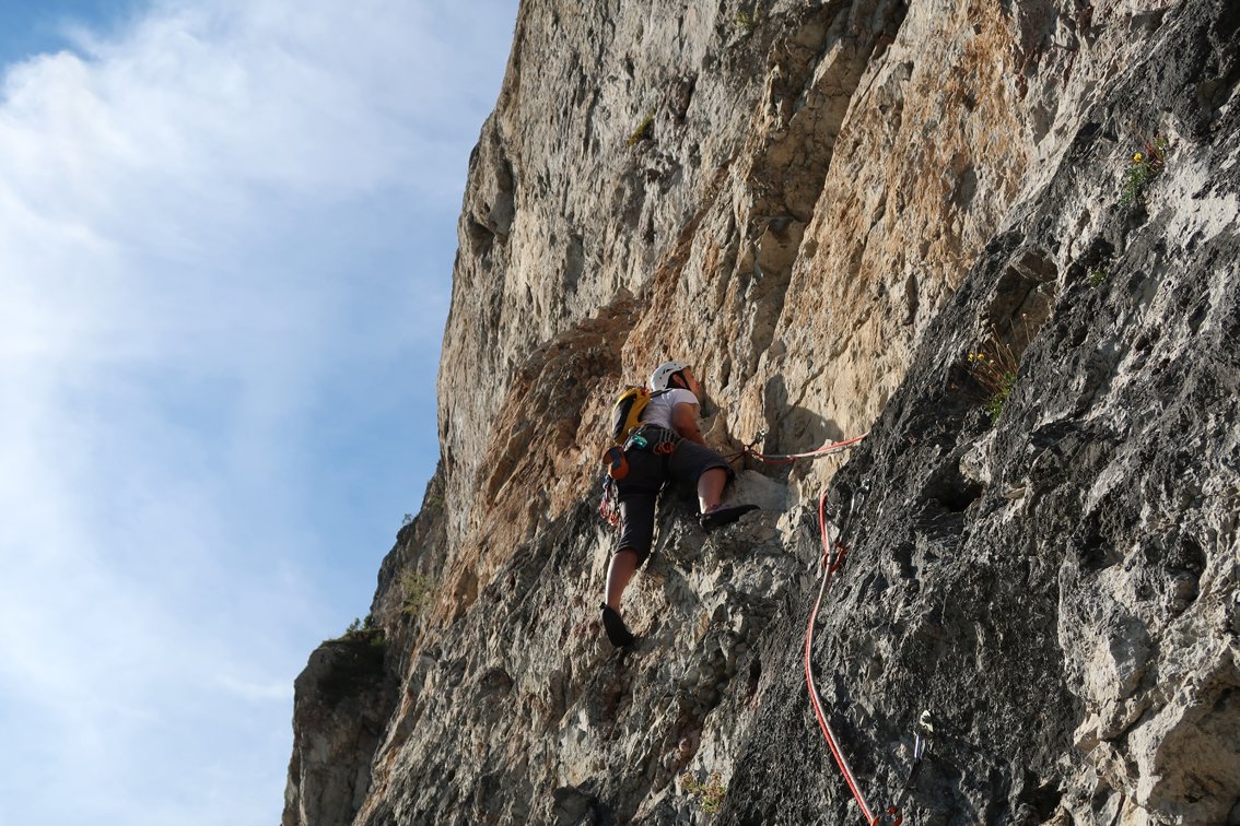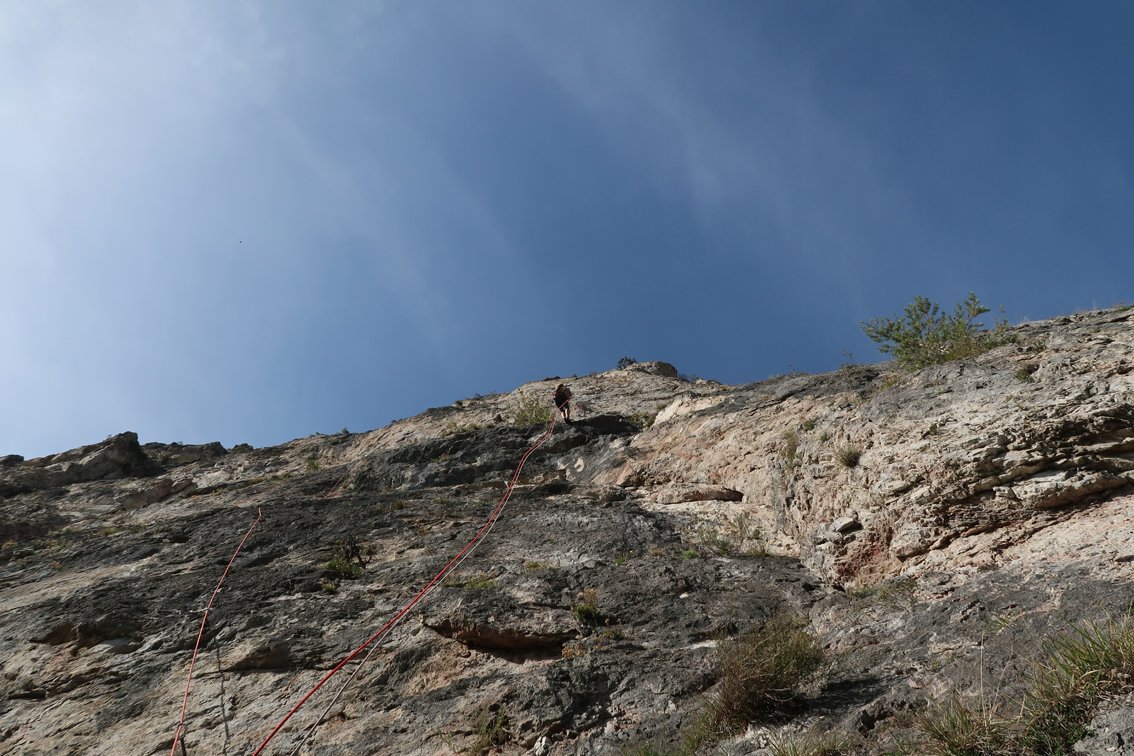 Der Fels ist nicht immer fest, einige brüchige Passagen. Die Absicherung ist aber wirklich sehr gut, deshalb stört das etwas weniger als sonst.