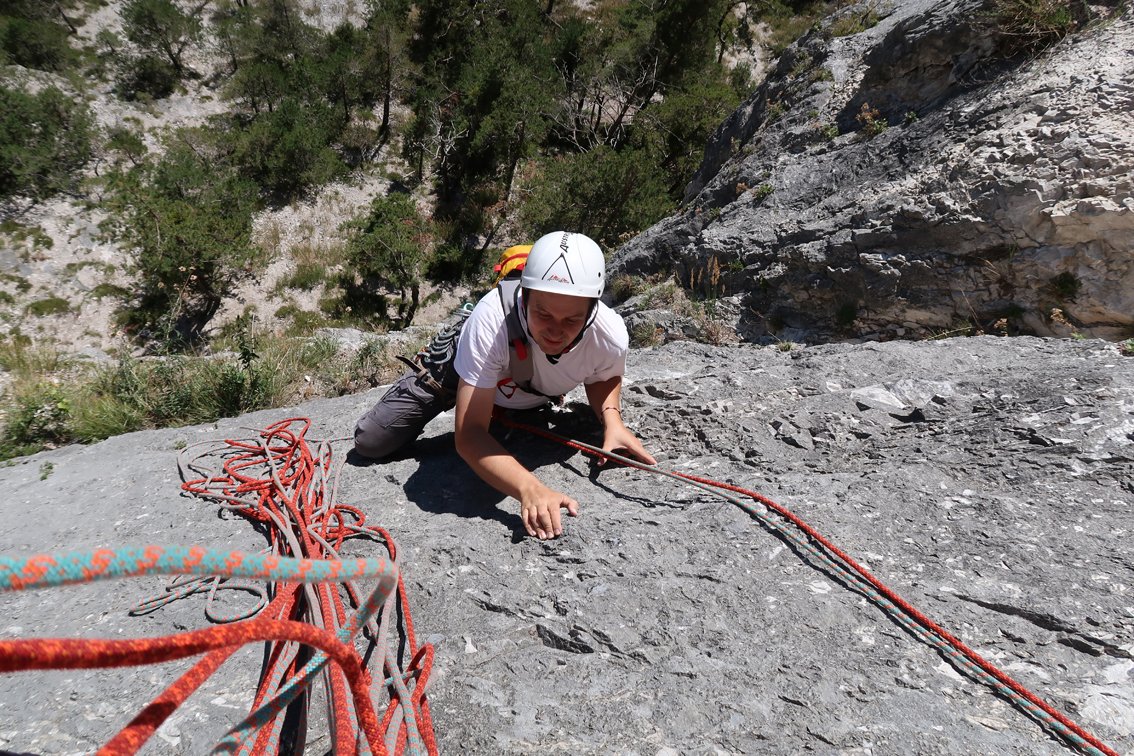 2 x 60 m Doppelseil oder 70 m Einfachseil, 14 (!!) Expressschlingen und Helm