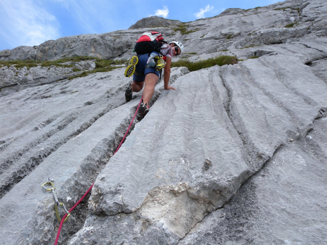 Teilweise etwas weite Hakenabstände, den oberen 3ten Grad sollte man sehr sicher klettern!